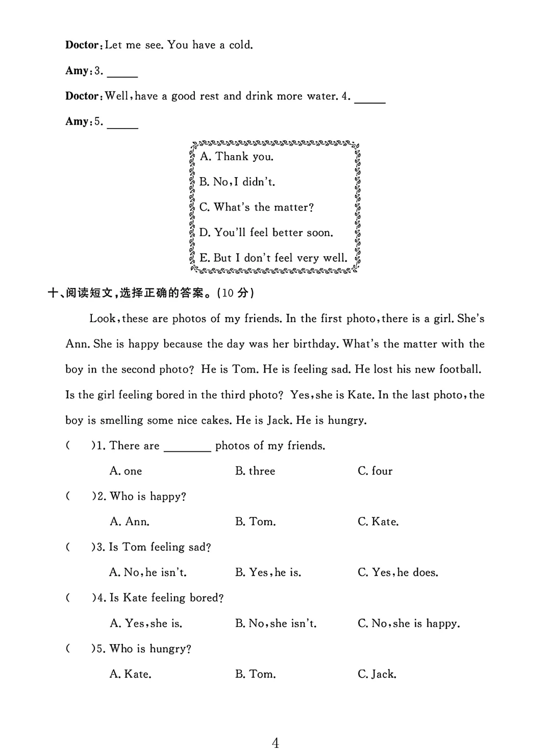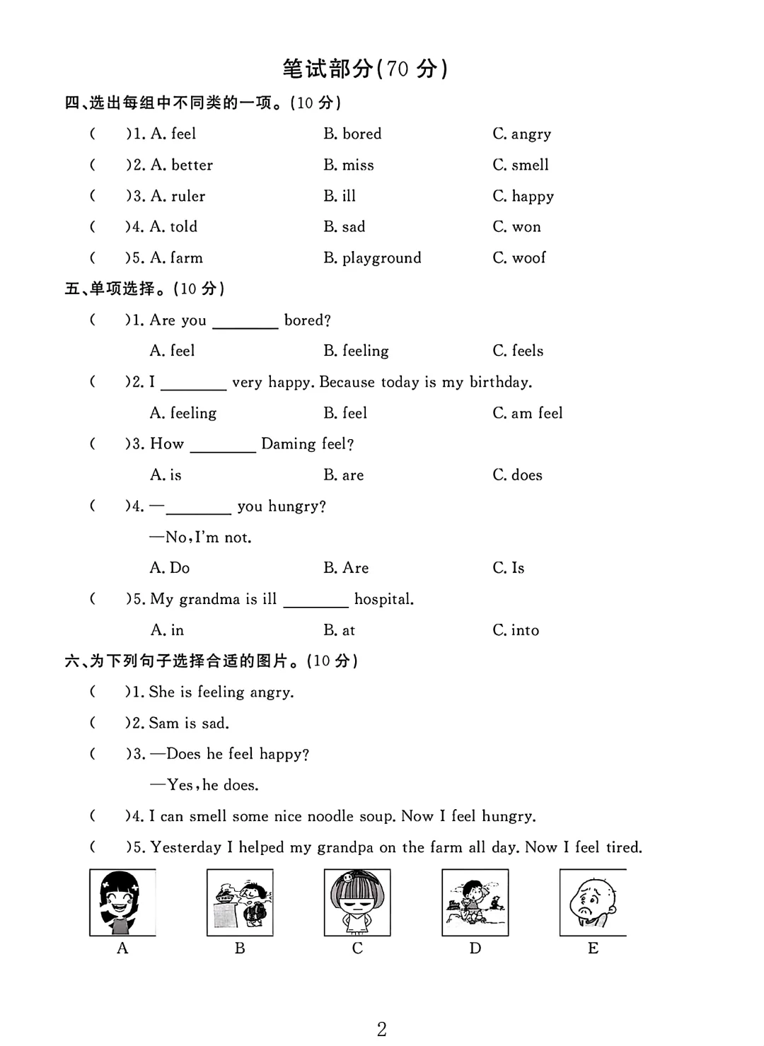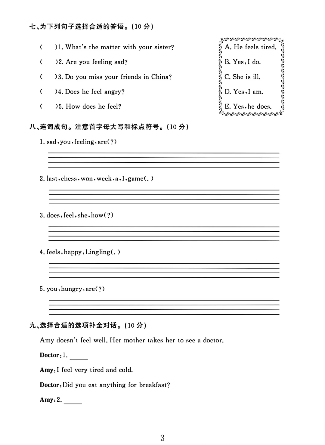 外研版 五年级上册英语 第九单元 试卷 单元测试 电子版可打印