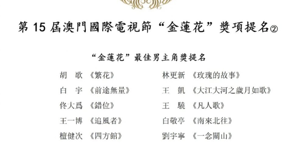 王一博提名金莲花最佳男主角 王一博凭借《热烈》提名澳门国际电影节最佳男主角,凭借《追风者》提名澳门国际电视节最佳男主角,影帝视帝双提名[good]