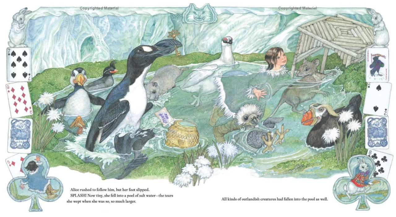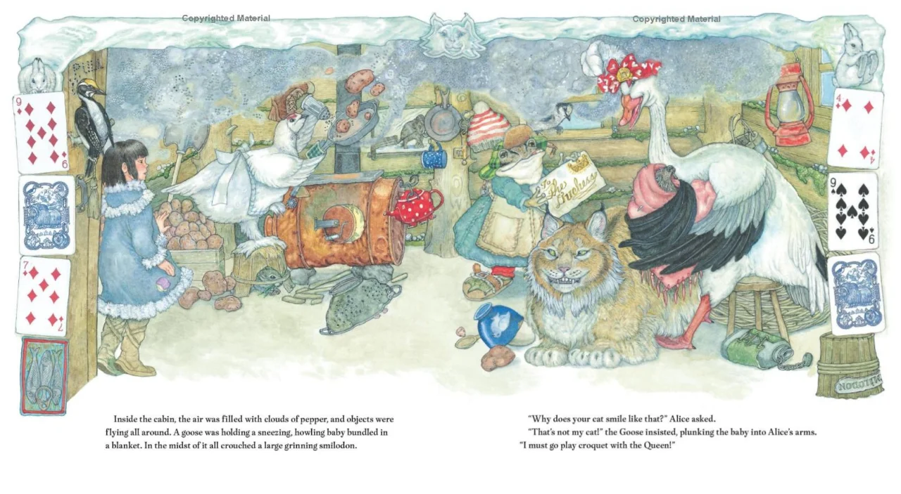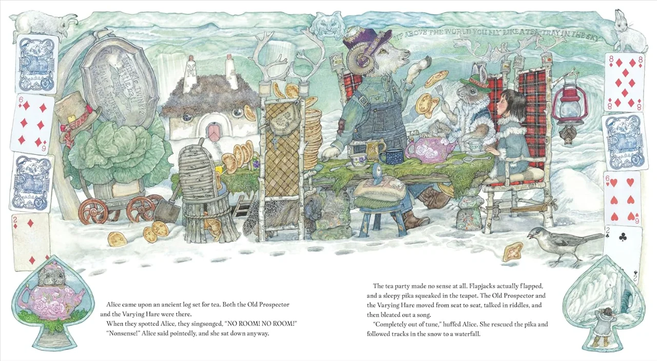 以简·布雷特丰富的标志性风格,将《爱丽丝梦游仙境》的精彩演绎带到了闪闪发光的阿拉斯加苔原。
