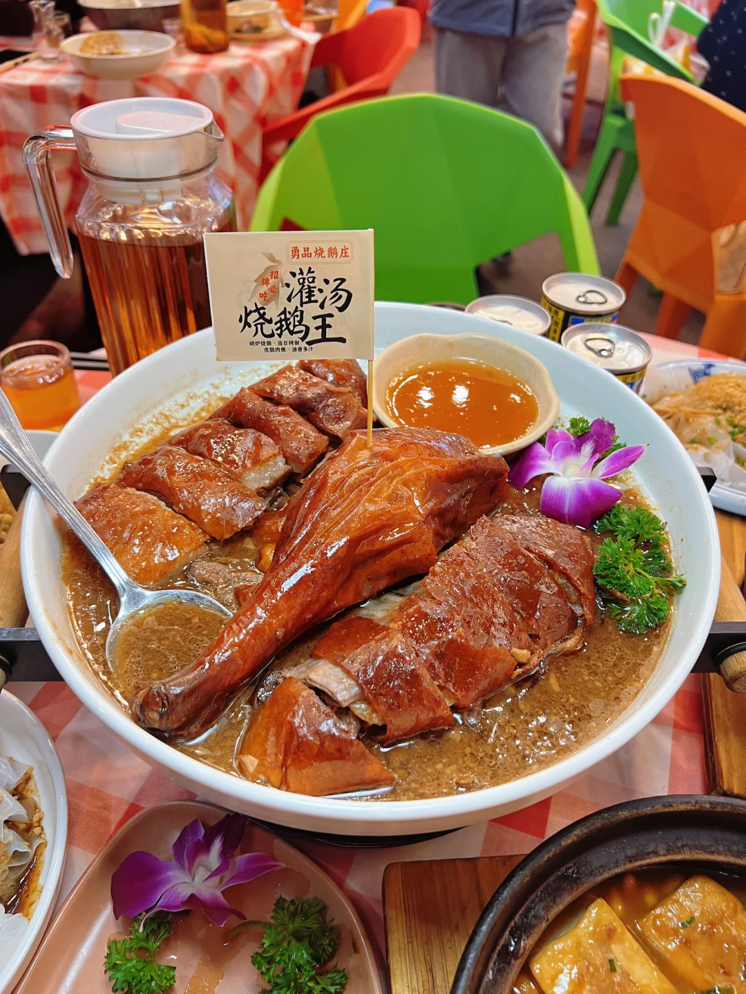 在桂雅路小学对面,一个广场里面,可以停车🅿️ 烧鹅碧点,浓香型的鹅够肥,但不腻,皮蛮薄~ 外皮趁热吃好香好脆…蘸酸梅酱平衡口感👍 烧鹅肉的口感是嫩滑多汁的(每只都是店内现烤的!) 切粉是Song的,捞烧鹅汁好正老广味很🉐️
