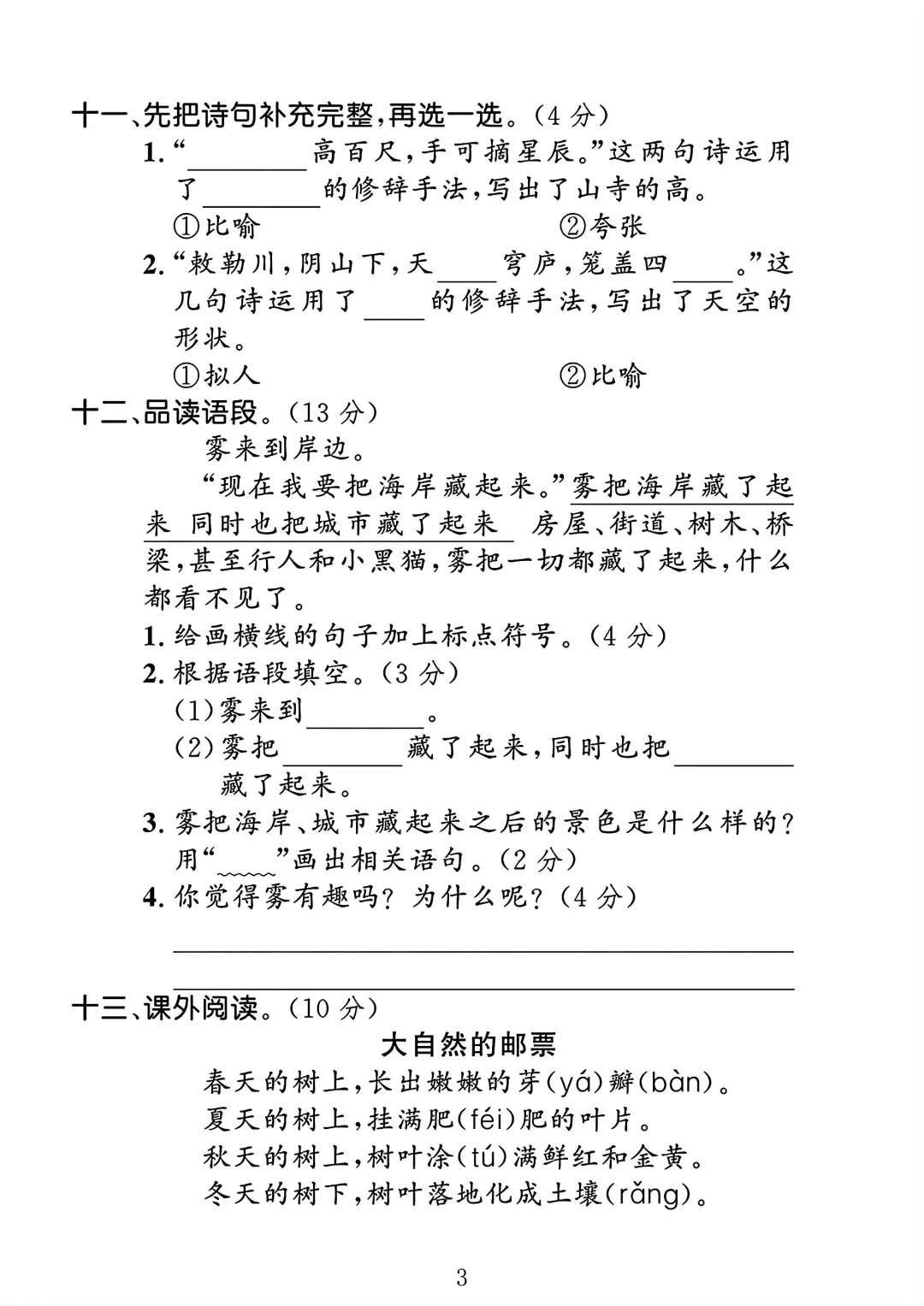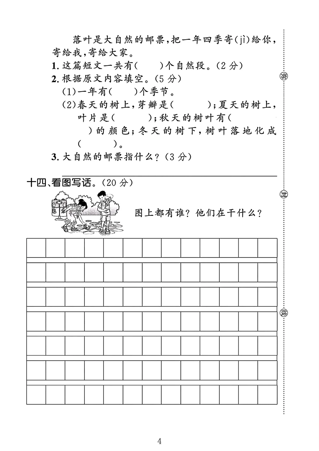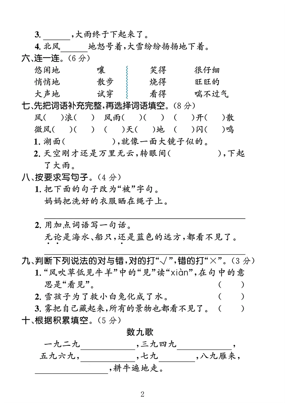 人教版 二年级上册语文 第七单元测试卷 单元测试 电子版可打印