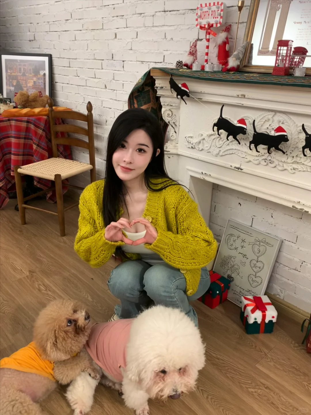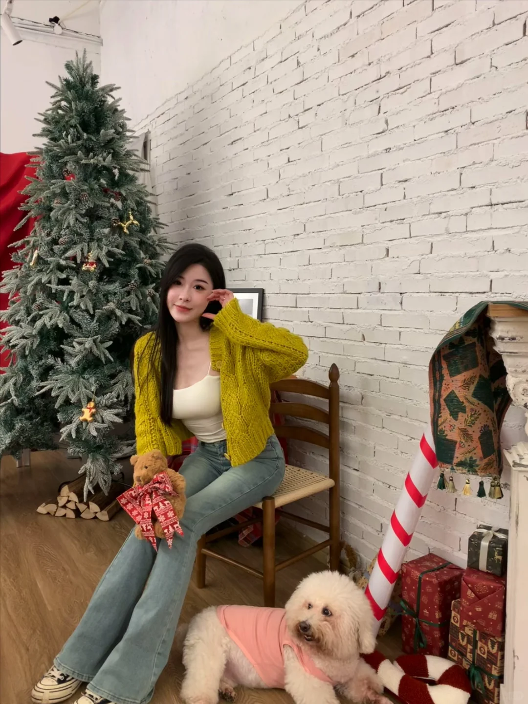 黄色毛衣真的很显白 我的小狗真的是拍照道具神器 哈哈哈哈哈