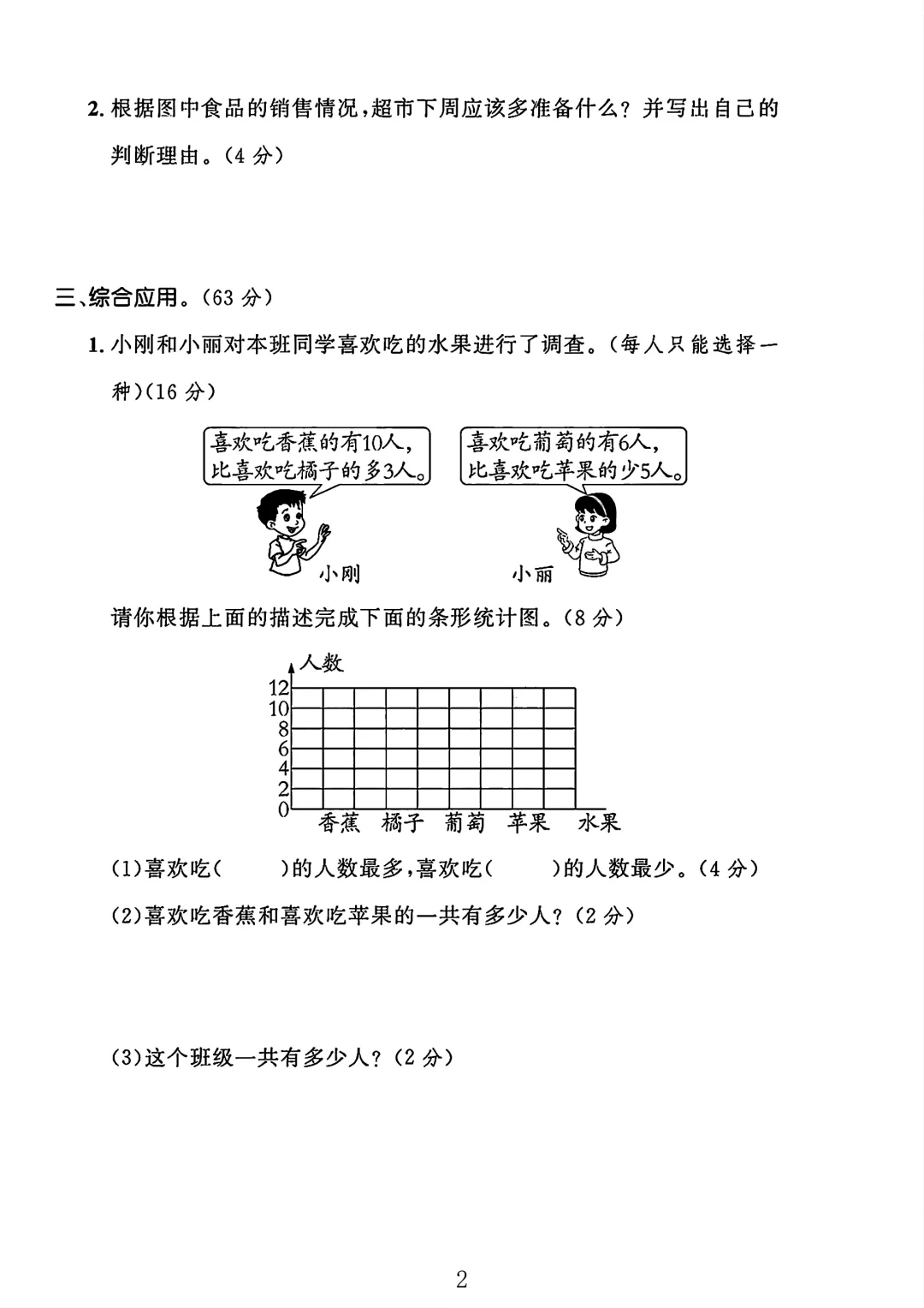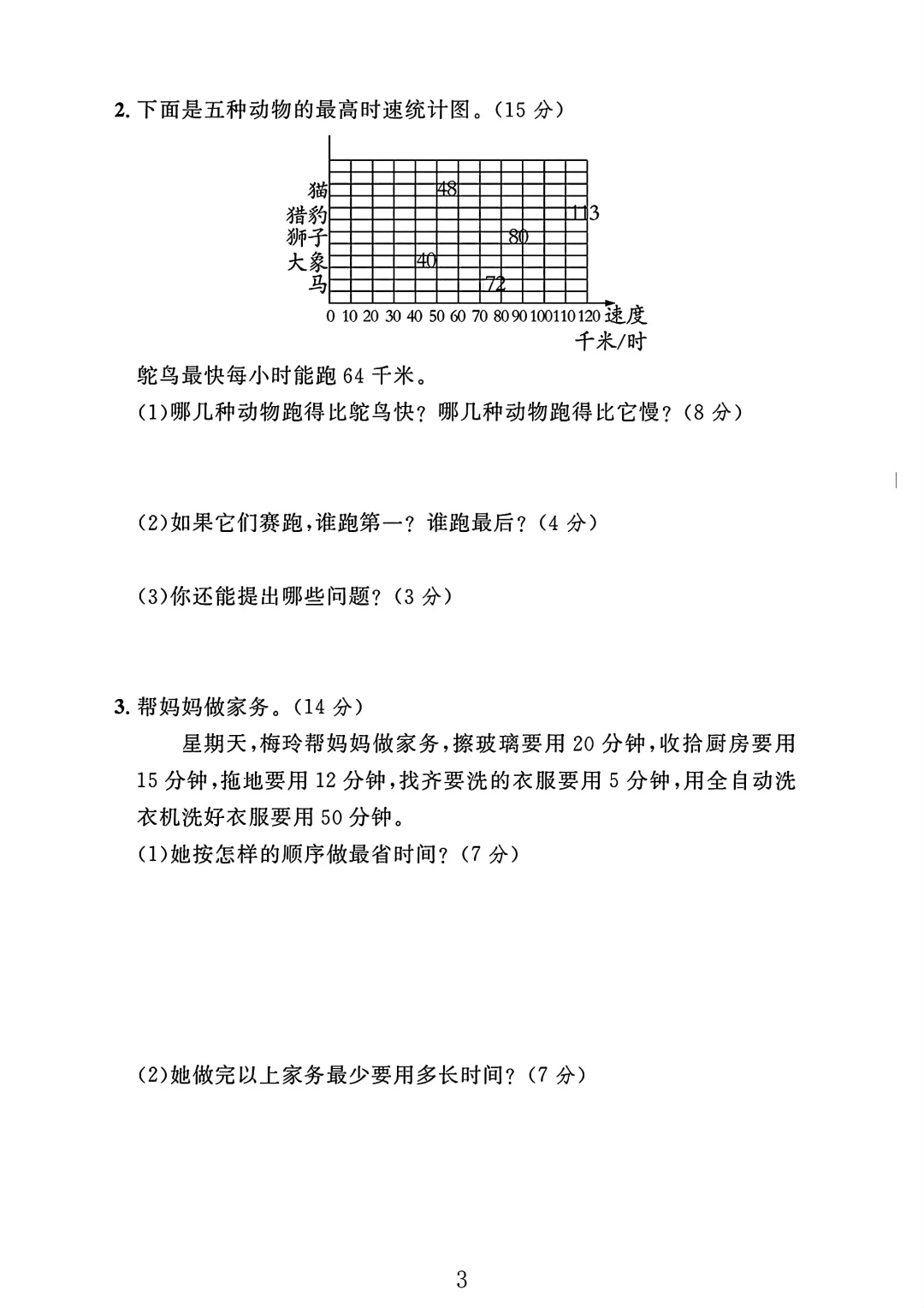人教版 四年级上册数学 第七单元测试卷 单元测试 电子版可打印