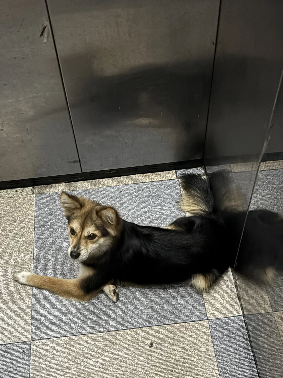 他以为只要进了电梯就可以到我们家[捂脸R]结果找错楼层了。被小区的邻居拍下来发群里问是谁家的狗。