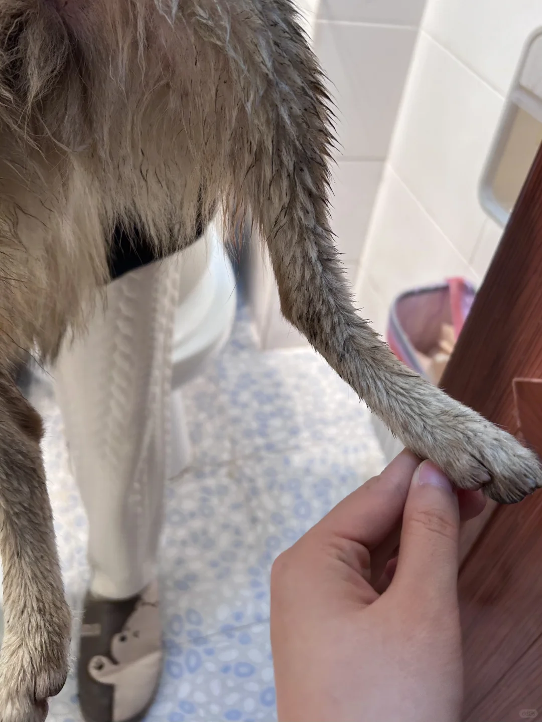 昨天下雨,他从雨里过来找我们,浑身湿了又干,毛都打结了,脚也都是泥(图三)于是我们给他洗了个澡吹干了才放他走[笑哭R]