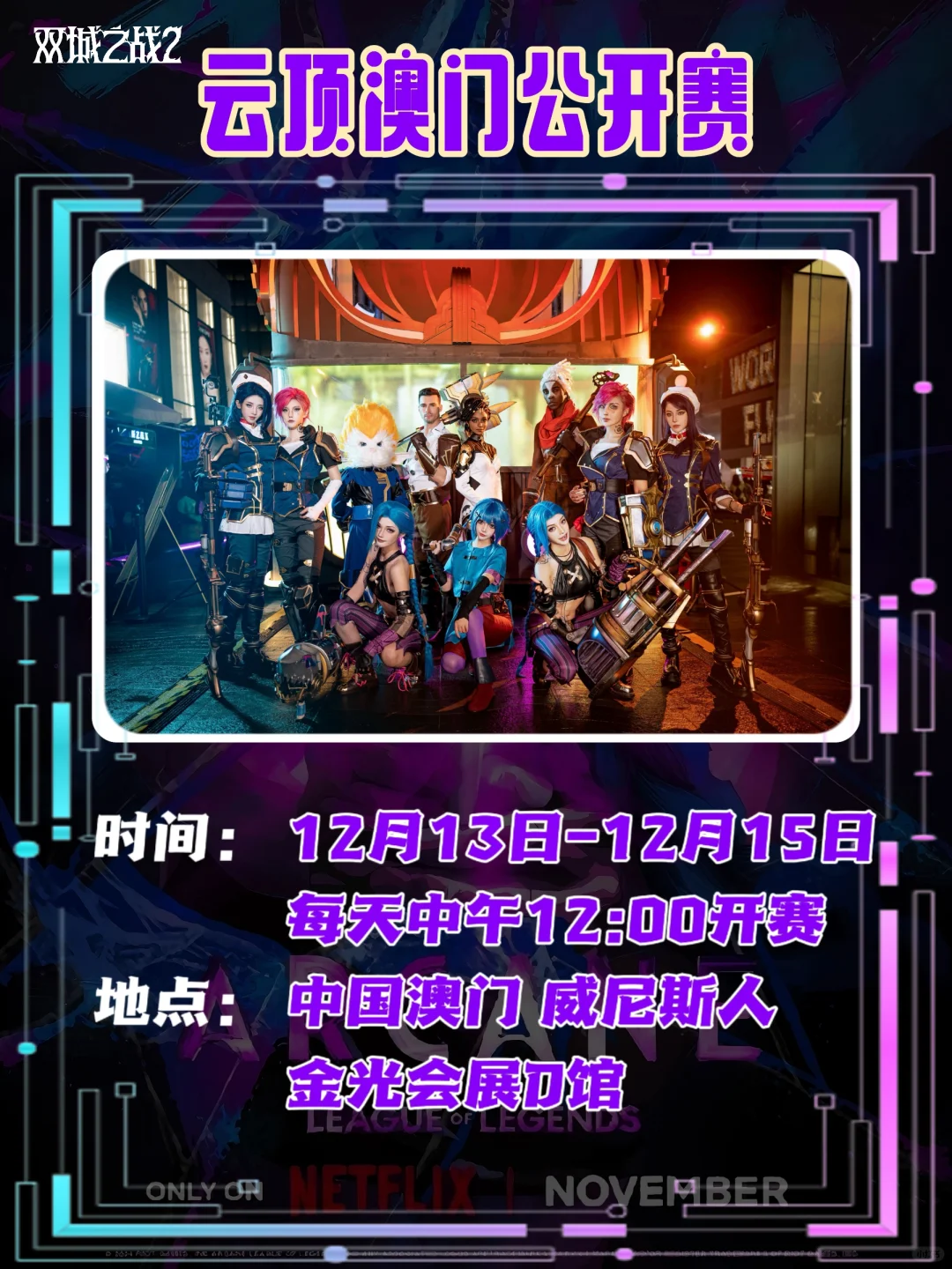 🔥还没有从双城之战2的动画走出来,云顶之弈澳门公开赛就要来啦!《英雄联盟:云顶之弈》澳门公开赛是是由拳头游戏主办的第二届年度全球开放线下赛事,512名选手将齐聚一堂,争夺澳门公开赛冠军头衔!只要cos双城中你喜欢的角色就可以免费看比赛! 🔥12月13日-12月15日云顶之弈澳门公开赛活动开始!届时作为观众还可以参加娱乐赛,玩独家娱乐模式!还可以与喜欢的主播和职业选手互动哦!
