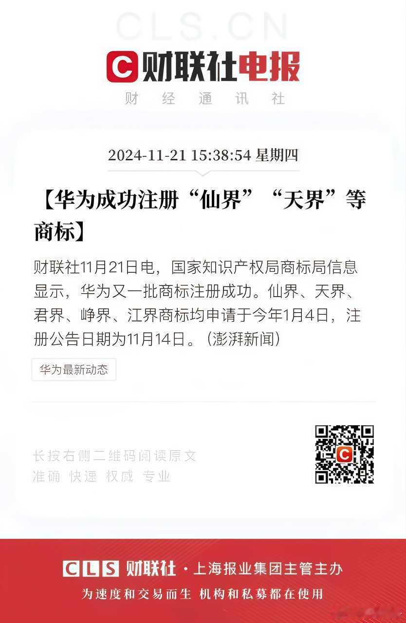看新闻,华为把“天界”“仙界”都注册成汽车、电动车商标了。众所周知,只要是交通工