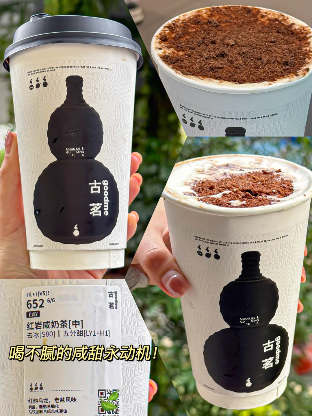 一口惊艳!!不愧是咸甜永动机…大红袍搭配老盐风味奶盖!!还有阿华田酷脆!咸香浓郁好好喝!