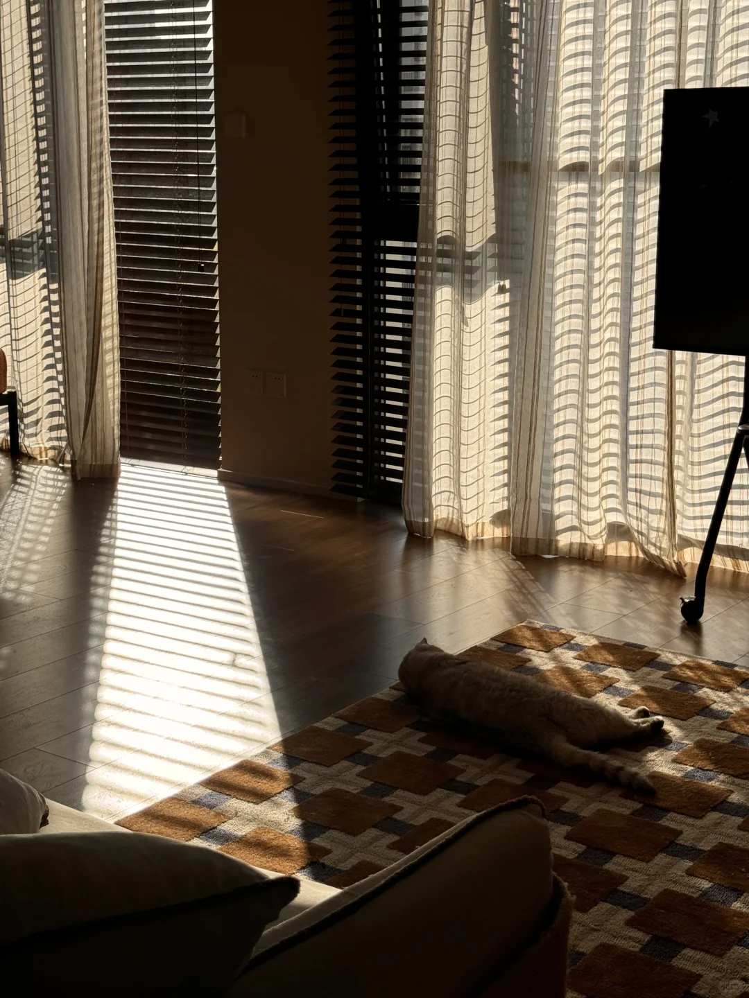 这是一个在北京五环外的小🏠 在每一个晴朗的日子里就会闪闪发光 是珍贵又免费的天然软装 每一个可以和猫一起躺在地毯上晒太阳的下午 都是 好日子