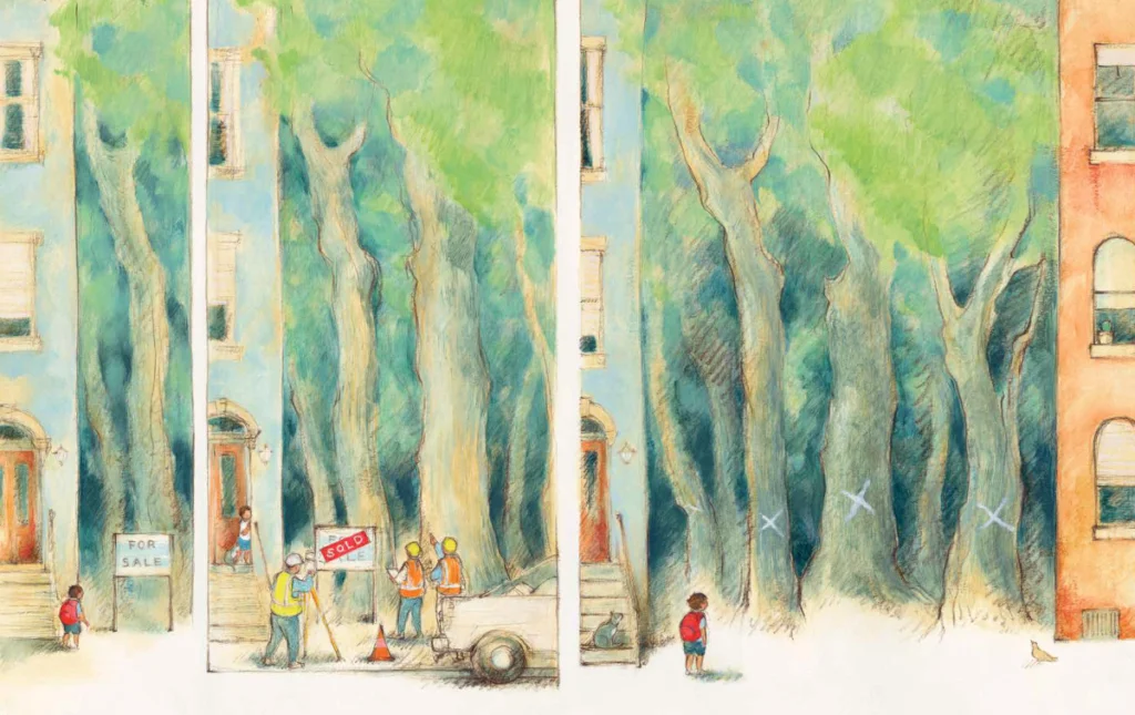 一位插画家创作了一本温柔、神奇、渲染华丽的无字图画书,讲述了一个男孩拯救隔壁空地上被石欠伐的树木的故事。