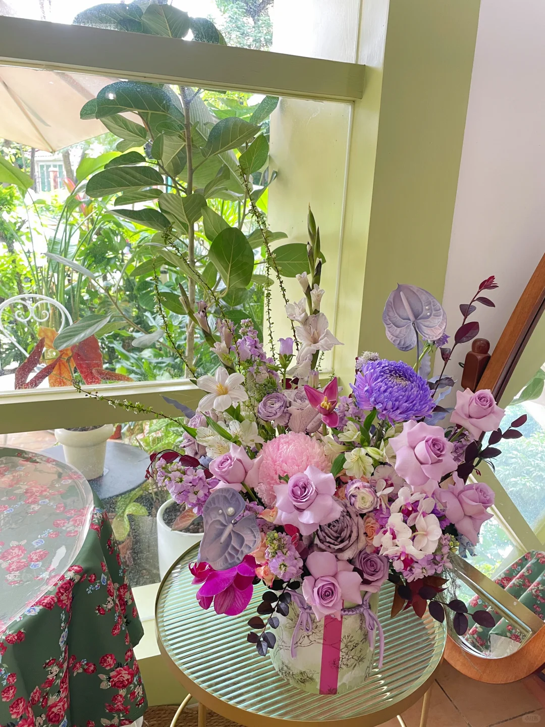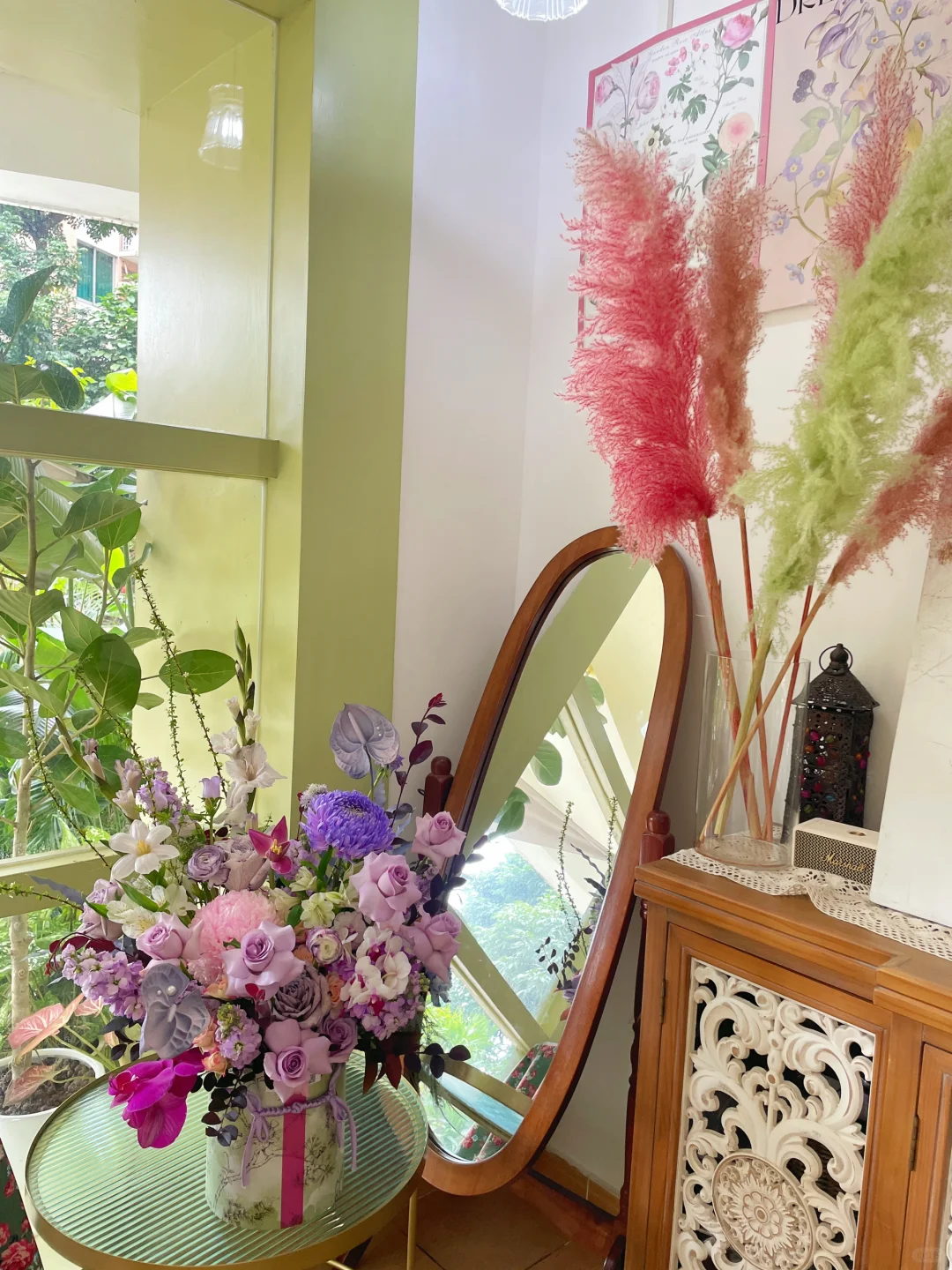 佛山花店 花店日常 花是抱在怀⾥的温暖 紫色系花蓝 鲜花抱抱桶 浪漫紫色系 小众花店 抱抱桶 花艺 顺德碧桂园花店