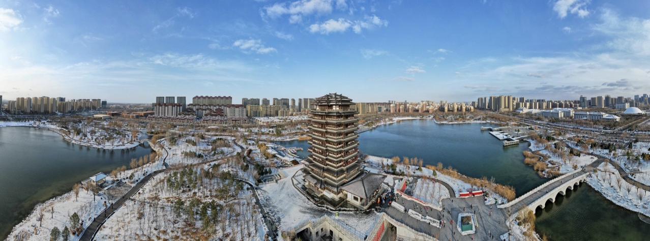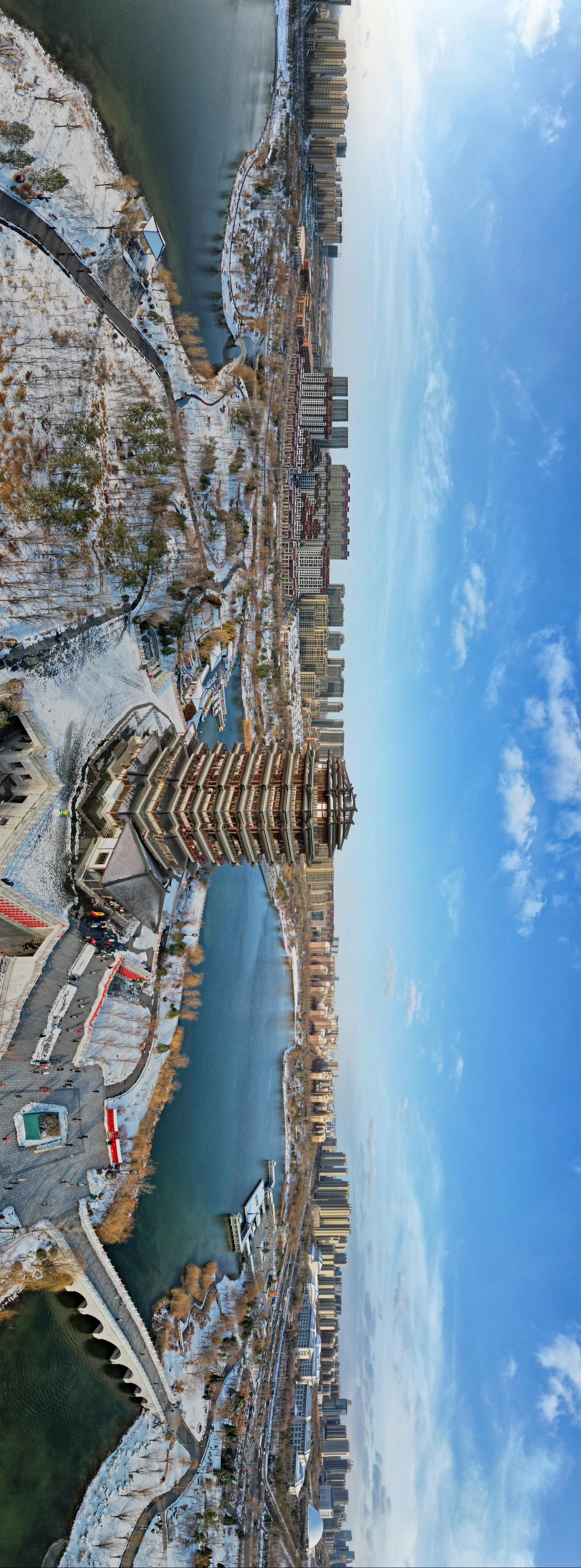 这是我航拍的的一年四季的海岱楼全景图,春(图1)、夏(图2)、秋(图3)、冬(图4)终于凑齐了!😘我用大疆拍全景 淄博 @DJI大疆创新