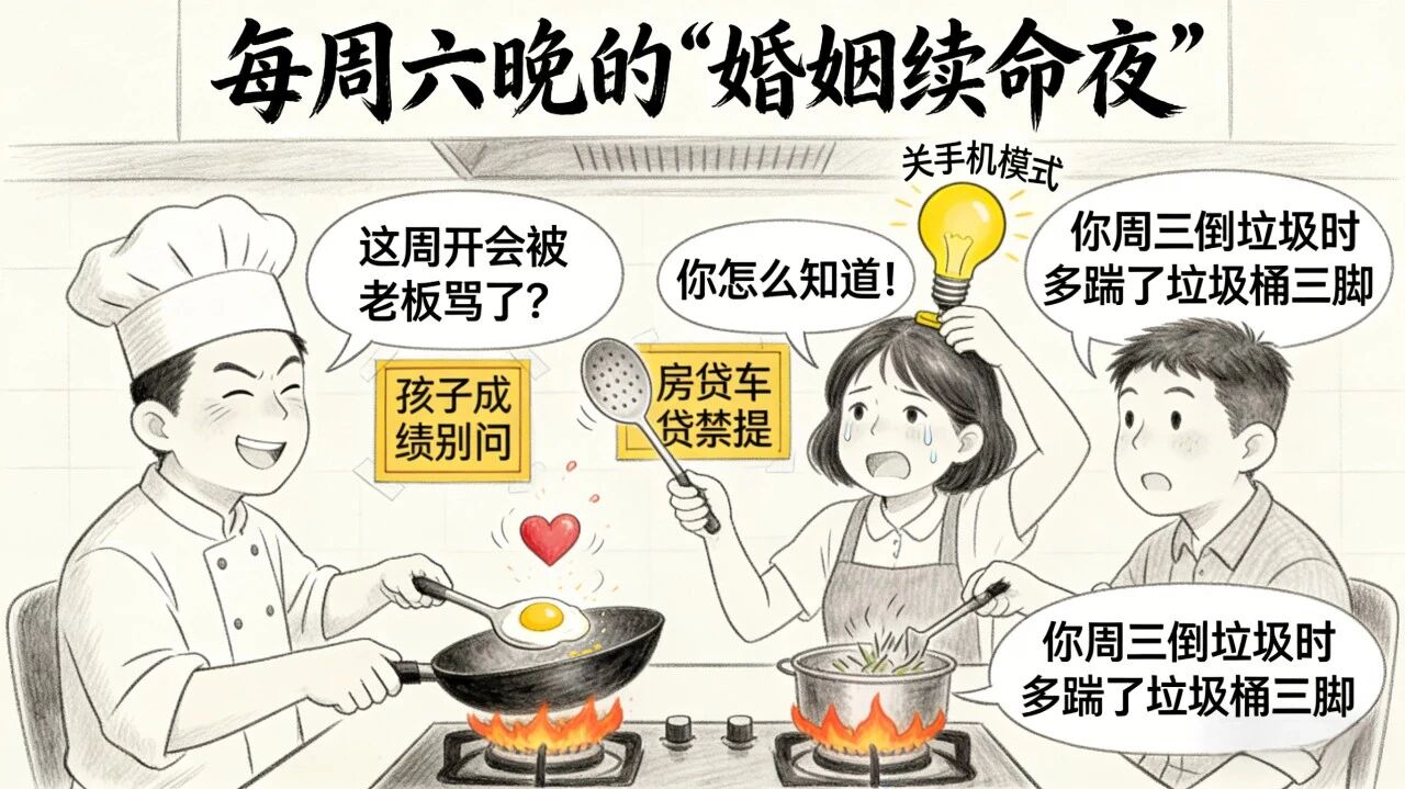 每周六晚上,两个人会关掉手机,一起做顿饭,然后聊聊这周各自的心事。