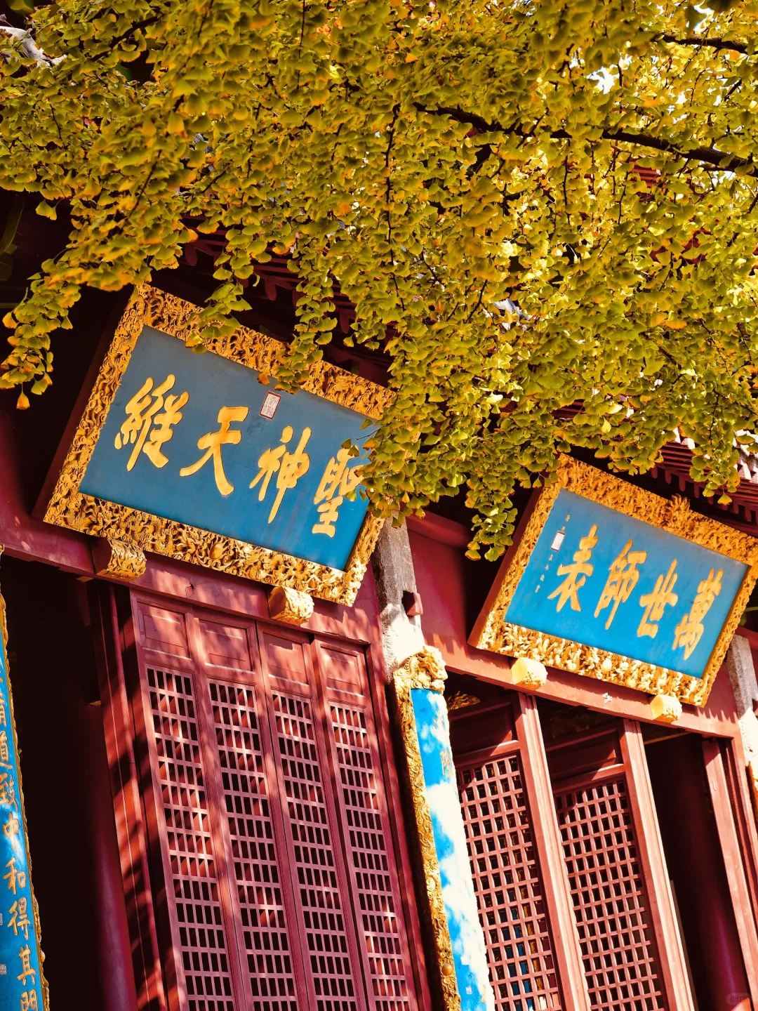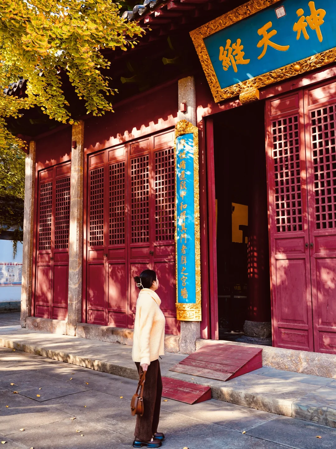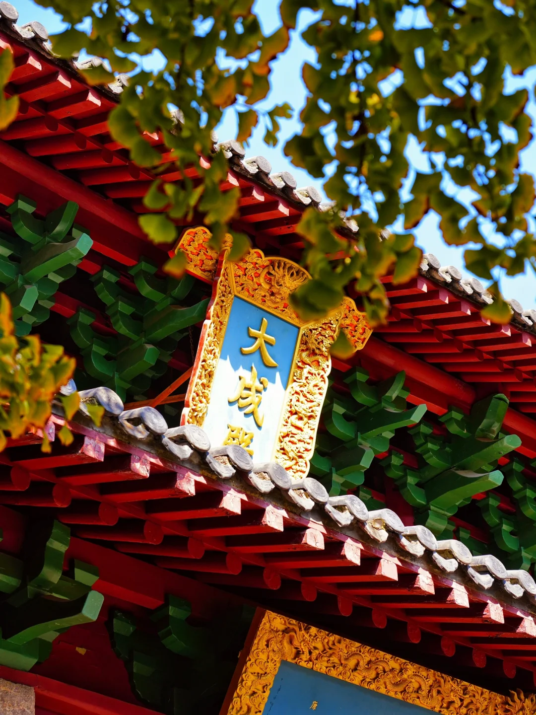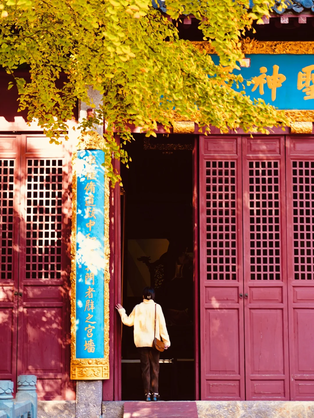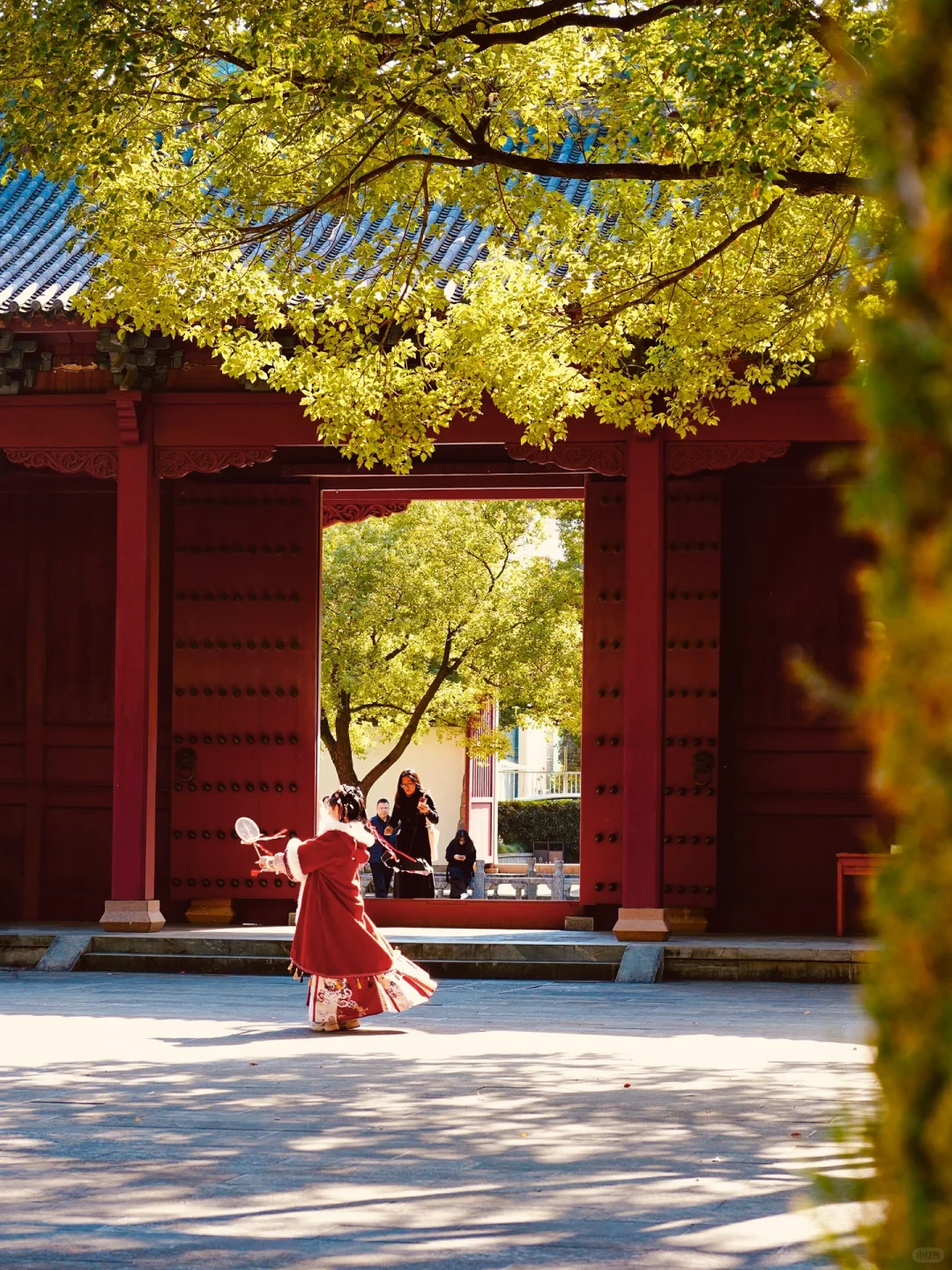 最近降温,杭州孔庙的银杏已经逐渐变黄了。这里的红墙黛瓦和黄色银杏相互交织,构成了一幅冬日画卷。阳光透过银杏,洒落在朱红色的门上,光影斑驳,显得很诗意美好!
