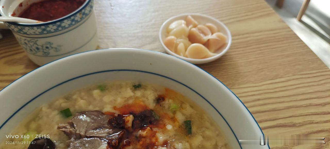 跟老友到陕建十一公司东隔壁“憨憨牛肉馆,”,说是牛肉泡卖8块5/碗,去尝尝。你想