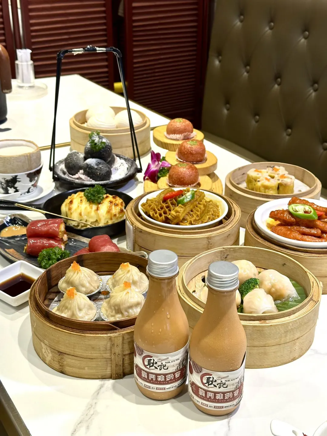 相信过来澳门旅游有做攻略的朋友都知道 澳门新马路是人流非常旺的地方👍🏻 如果大家来旅游不妨可以来试试这间点心, 每一款点心都各有特色😋 而且在中式点心的基础上加了新元素, 从外观上看非常有食欲和吸引🥰 这次我们点了「耿记虾饺王」、「爆汁流心小笼包」、「金沙红米肠」等 最惊喜的是他们的「耿记蟹籽烧卖」, 入口就吃到浓郁的蟹籽味😋 而且馅料还是满满的! 而「紫心山竹果」不仅卖相好看! 咬下去烟烟韧韧,甜而不腻 他们还有港式地道的「樽仔奶茶」, 不要错过啦!!! 这间点心很适合与朋友、一家大小来吃🥰