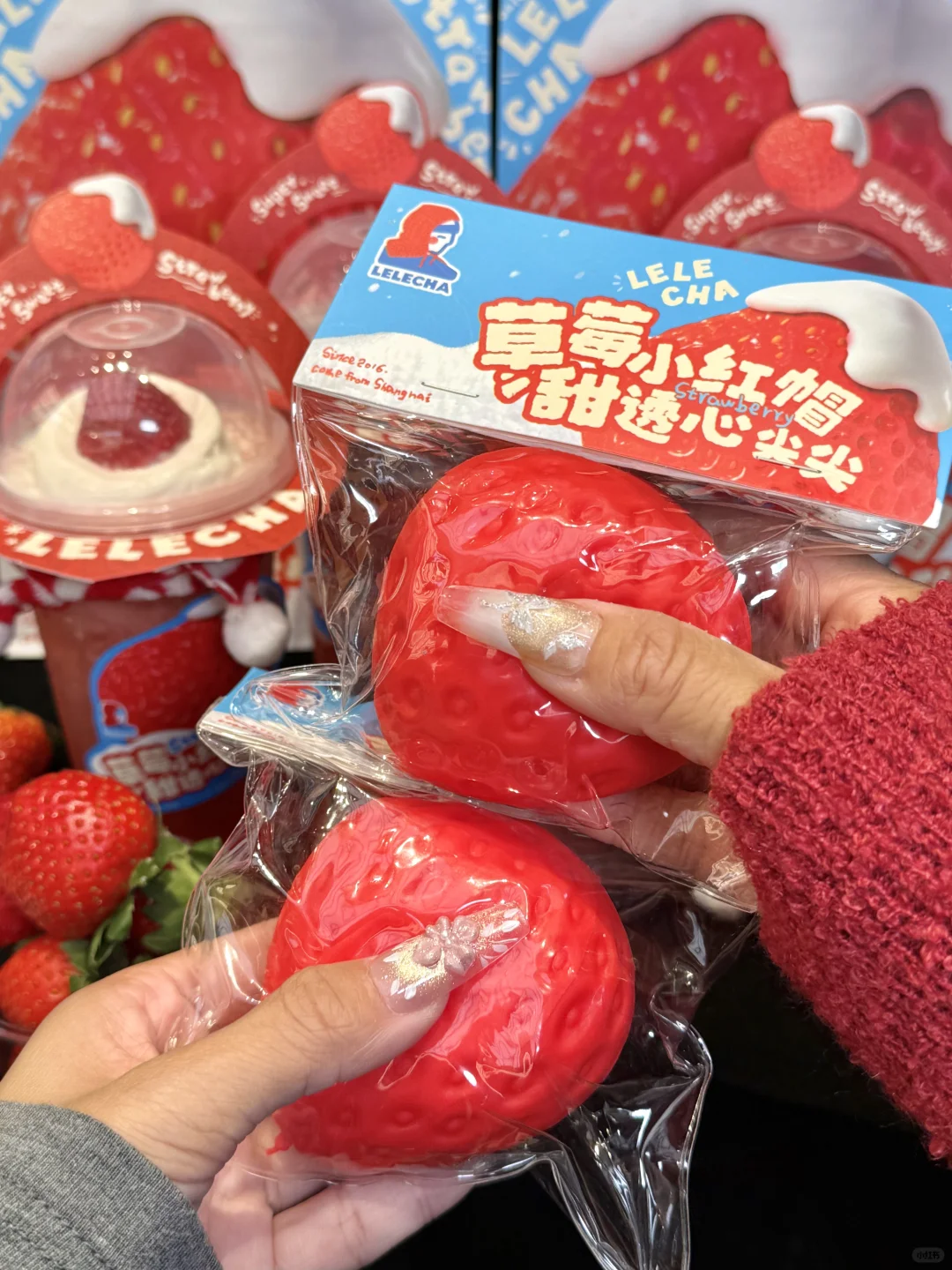周边有双杯袋和草莓捏捏,尊嘟好解压耶!!!
