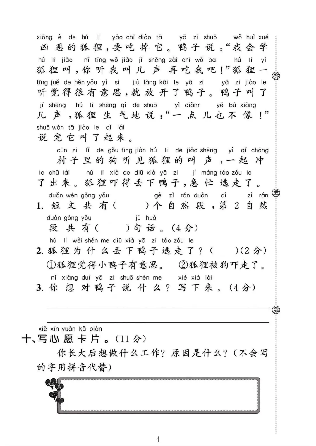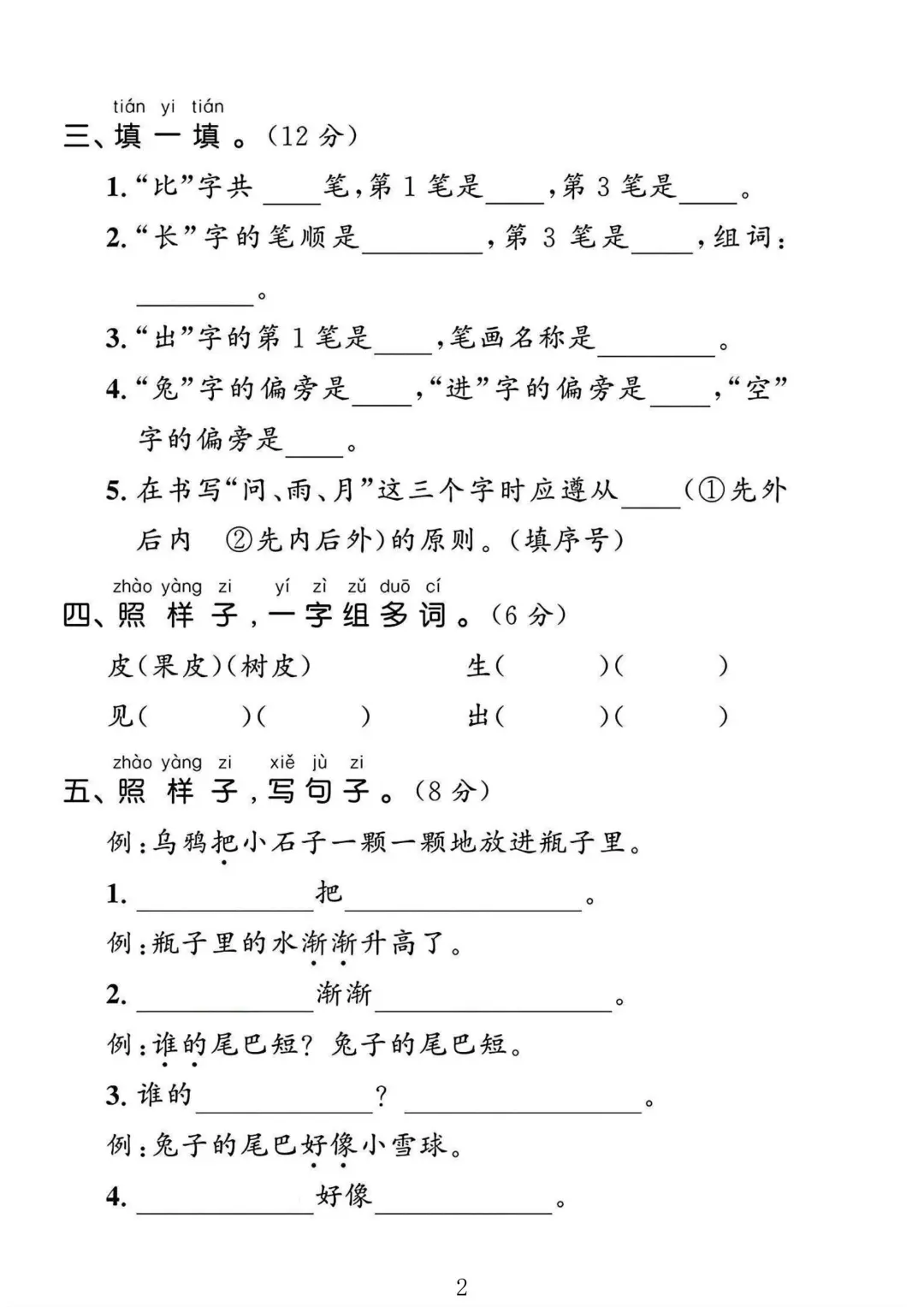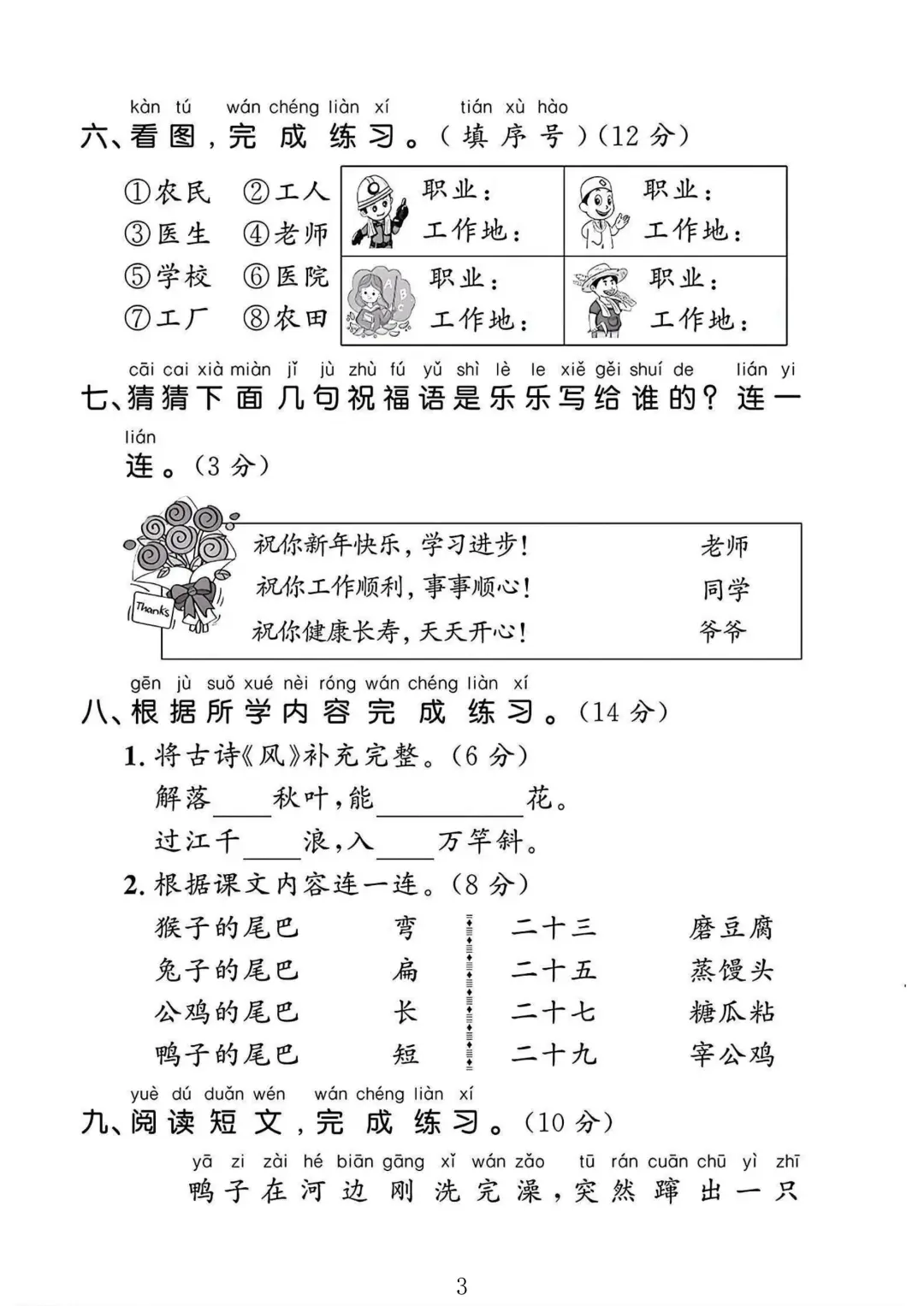 人教版 一年级上册语文 单元测试 第八单元 试卷 电子版可打印