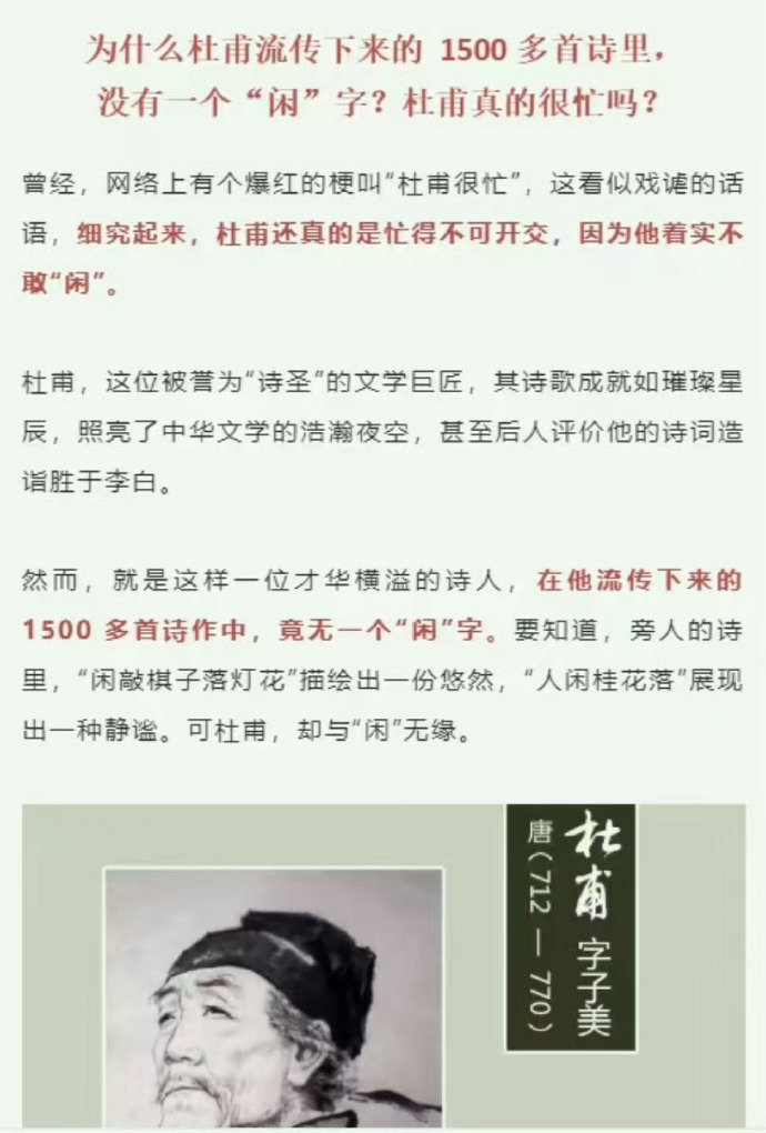 杜甫很忙究竟在忙什么 咱就是说杜甫究竟在忙些啥呢?不过还真别说,为了赶路能够这么忙,为了作品能够这么忙,属实是真的没有任何一点闲的时候。