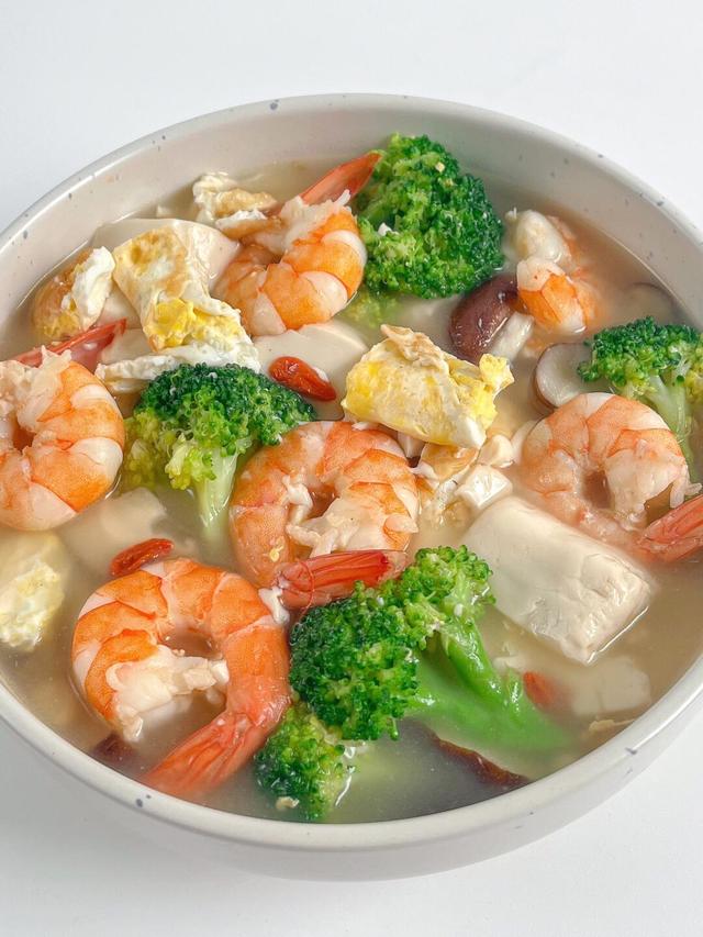 虾仁和豆腐都是高蛋白食材,搭配富含维生素的西兰花,不仅能滋养气血,还能清肝火,帮助调节情绪。这道汤清淡可口,营养丰富,喝上一口,暖心又暖胃。