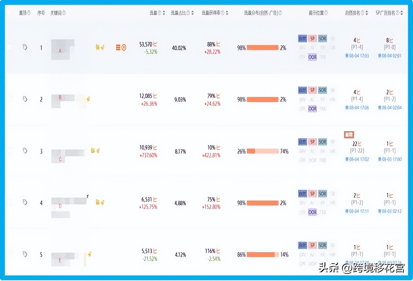 尤其是 A 词和 B 词,两个词的流量占比加起来超过 50%,是绝对的 “流量担当”。