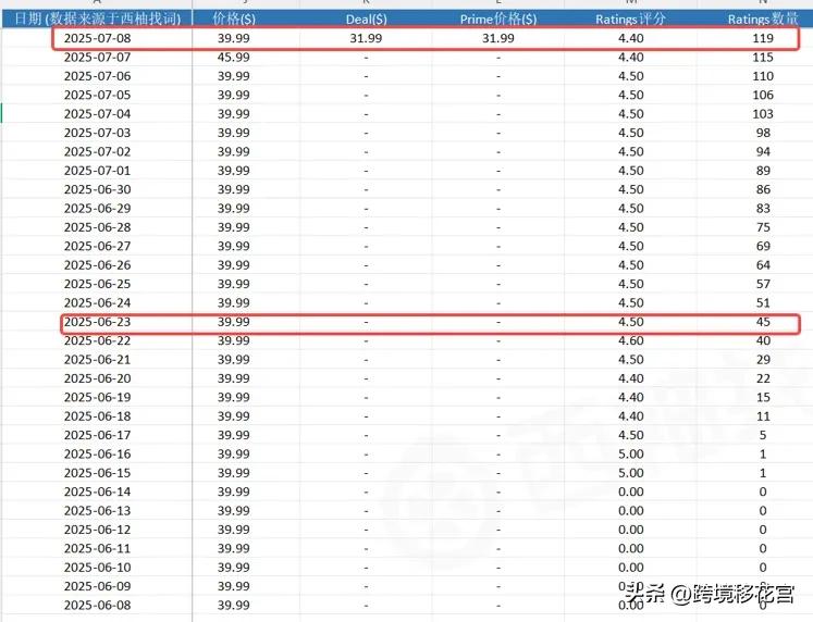 我们看数据:它 6 月 8 日上架,到 6 月 23 日就有了 45 条评论,7 月 8 日直接到了 119 条 —— 这个速度远超普通链接。