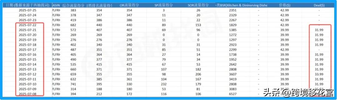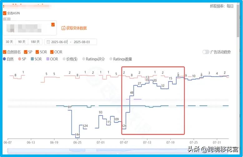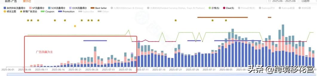 到了 7 月下旬,自然流量得分占比大幅提升,慢慢变成 “自然流量为主、广告流量辅助”—— 这才是健康的流量结构,也是冲 BSR 的关键。