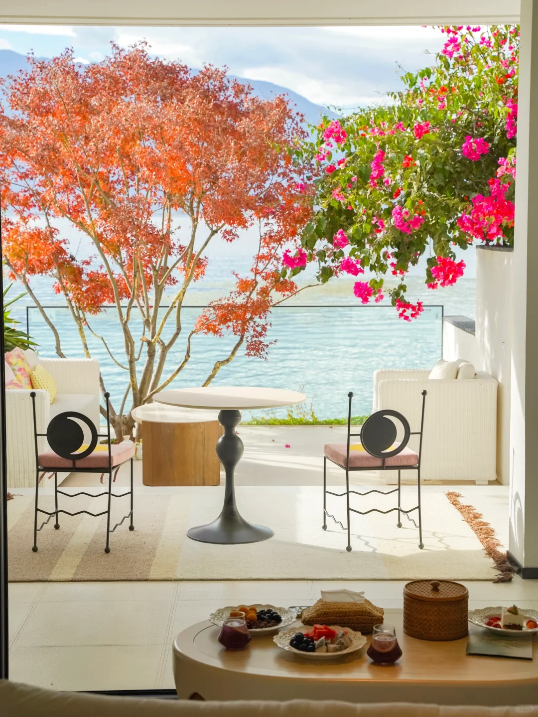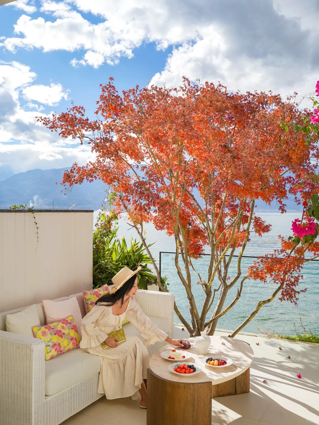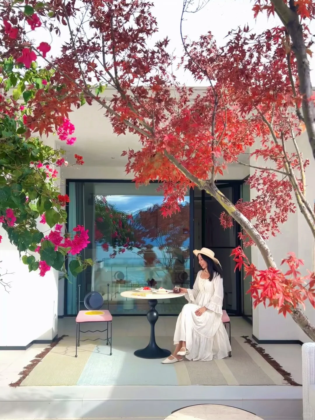 📍双廊安止风随花开(p7,8,12,13)露台的红枫与洱海同框,旁边还有三角梅好诗意。
