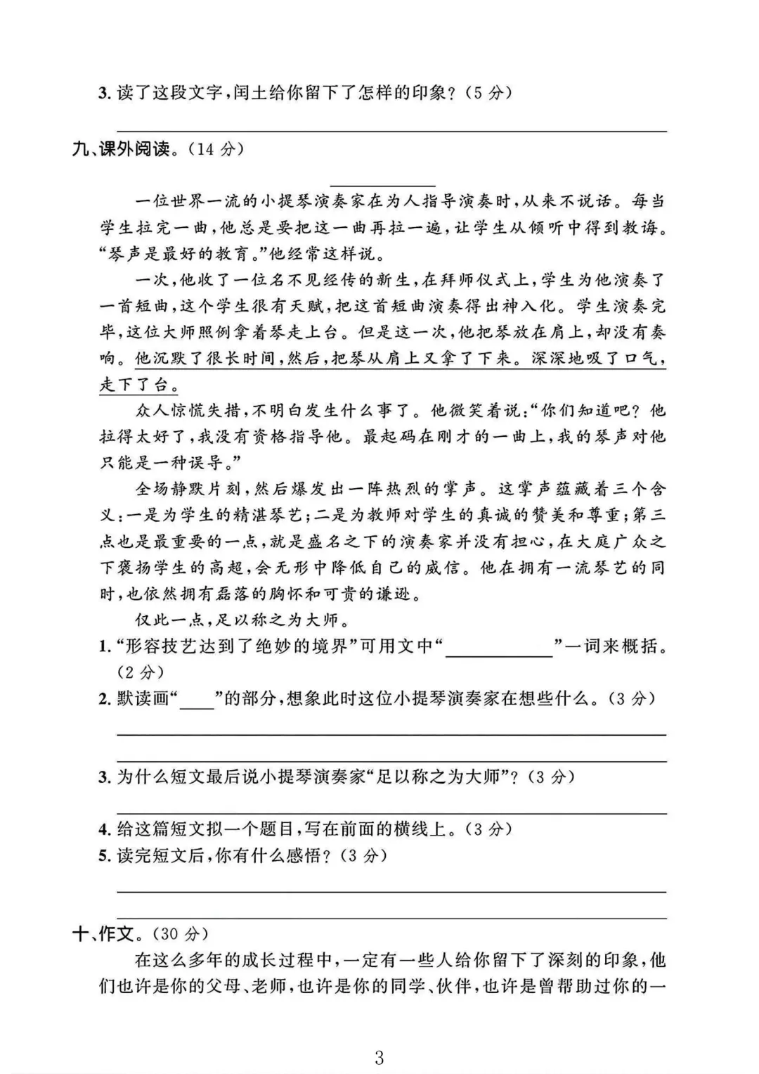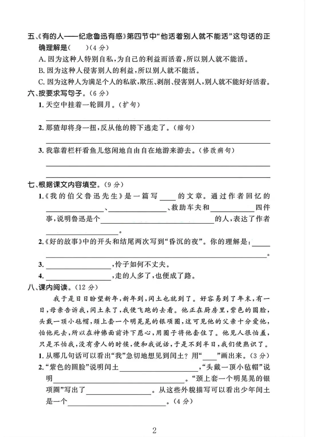 人教版 六年级上册语文 第八单元 试卷 测试卷 单元测试 电子版可打印
