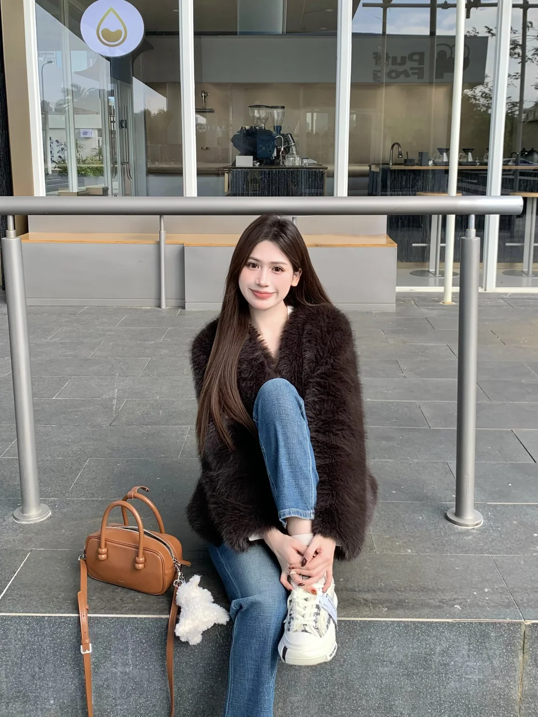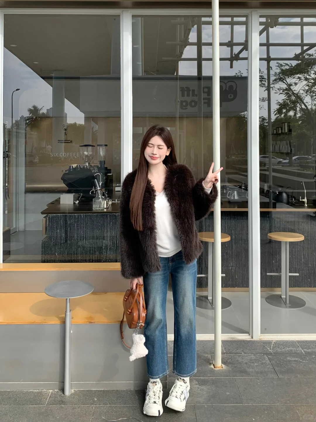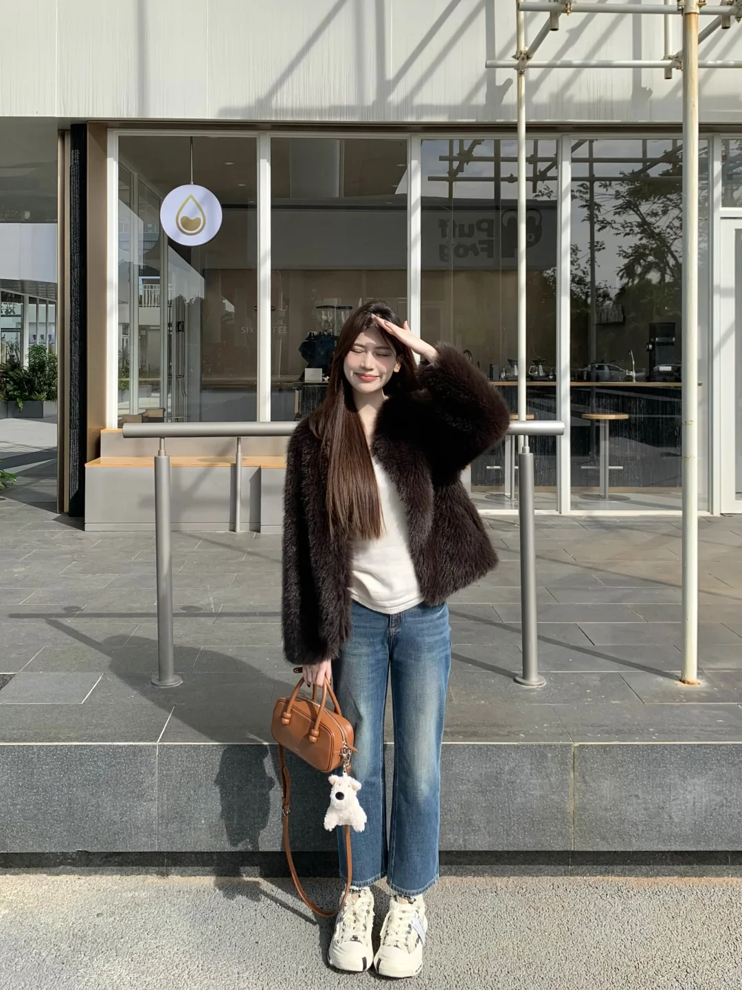 慵懒感穿搭 cleanfit简单出门 皮草穿搭
