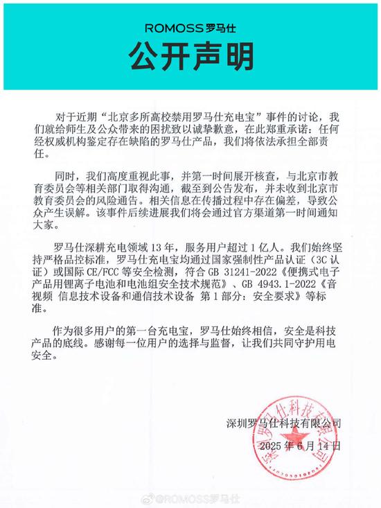 [2]界面新闻《罗马仕最新回应:本次召回长期有效,售后服务按照计划运行》20250715