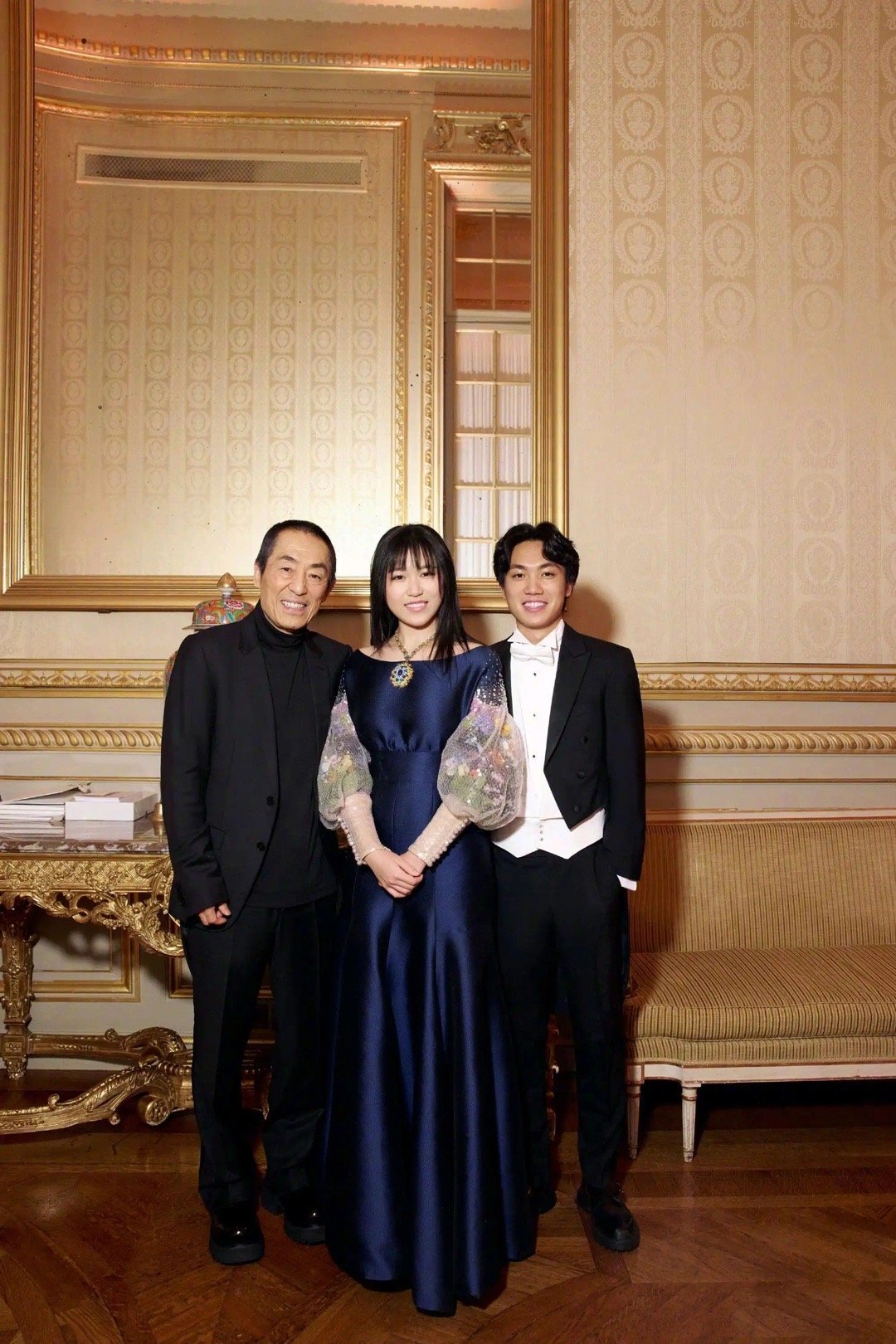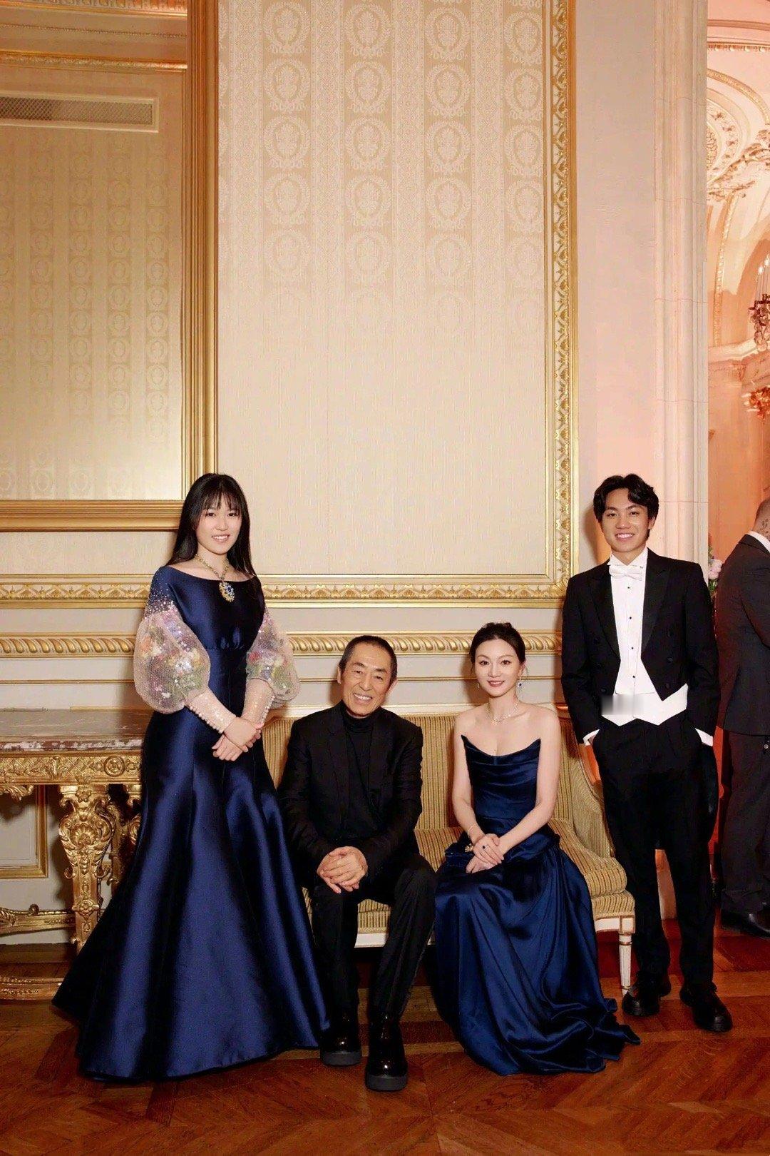 张艺谋女儿张壹娇首次亮相巴黎名媛舞会,张艺谋携妻子陈婷、儿子张壹丁到场支持。