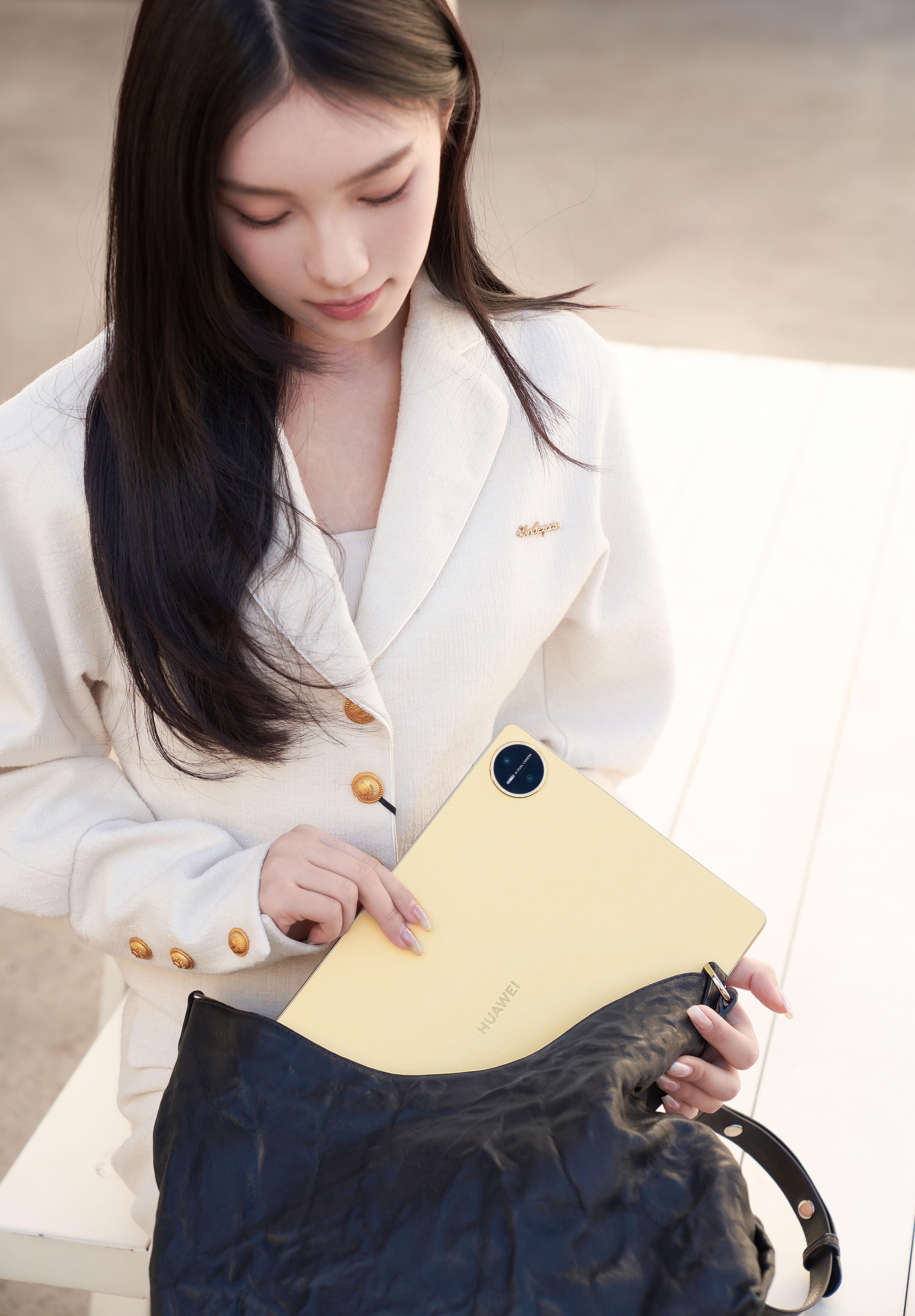 首先,作为颜控选购产品时,颜值是很重要的。这个流金丝帛质感的外观真的让我一眼沦陷,真的是把人文美学设计狠狠拿捏住了!它的屏幕采用了大尺寸柔性OLED屏,视野开阔,操作也更方便了。当然,别看它尺寸大,机身却很轻薄,放在包里随身携带那是轻轻松松,一点负担也没有。
