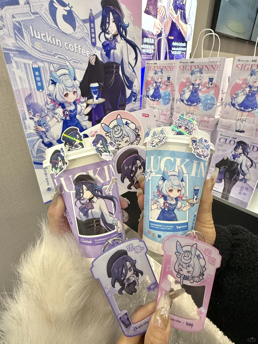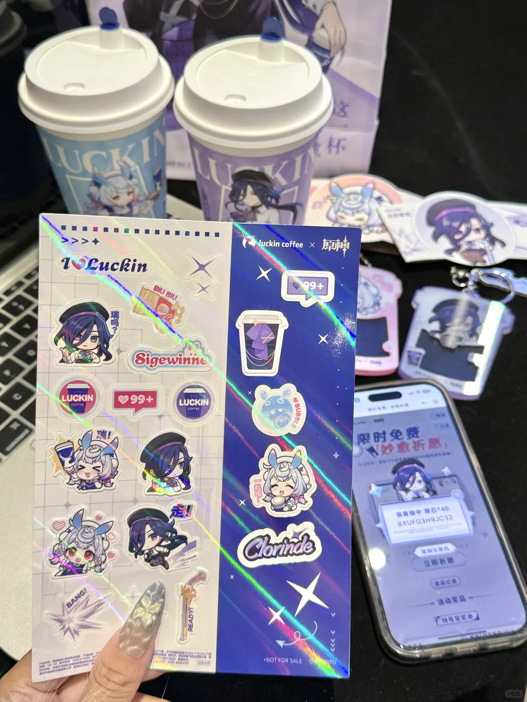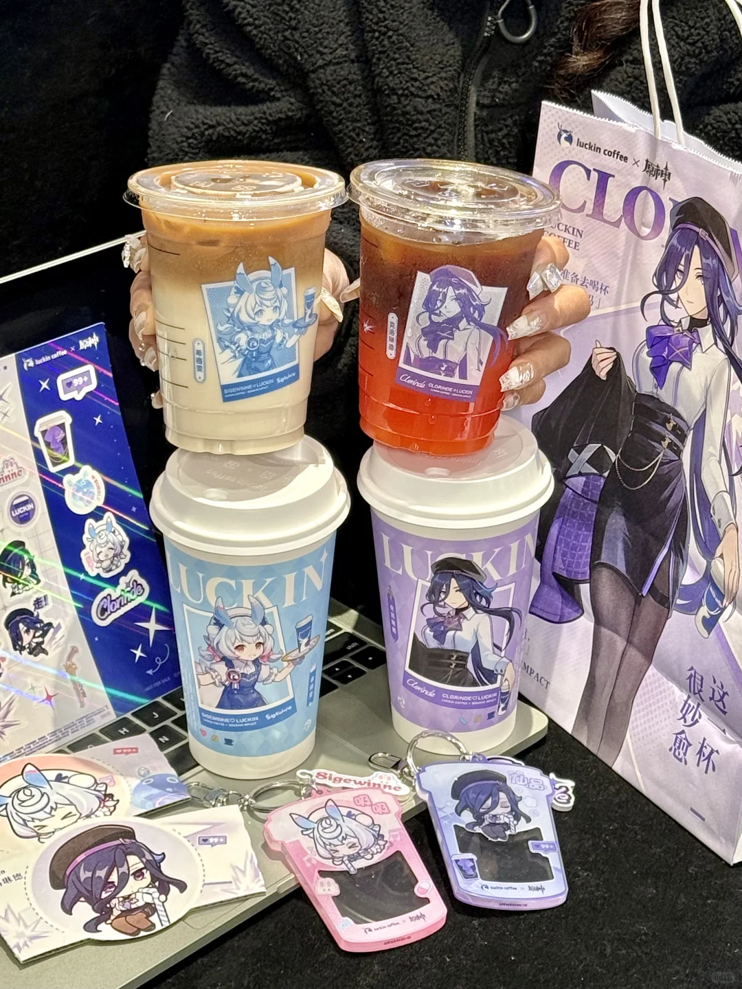 啊啊啊终于上了!瑞幸原神联名! 一大早就拉着朋友冲了 周边亚克力钥匙扣、贴纸、杯套和主题杯……克洛琳德和希格雯两款通通拿下!! 钥匙扣晃动还会眨眼睛太可爱了!!亚克力厚度很坚硬超喜欢啊啊啊啊 还有chou🎁机会姐妹们别忘了 到底是谁在抽中原神包年咖啡啊啊啊! 俺试了四个手机也没抽到😡😡 谁中了快出来给我吸吸欧气!!!