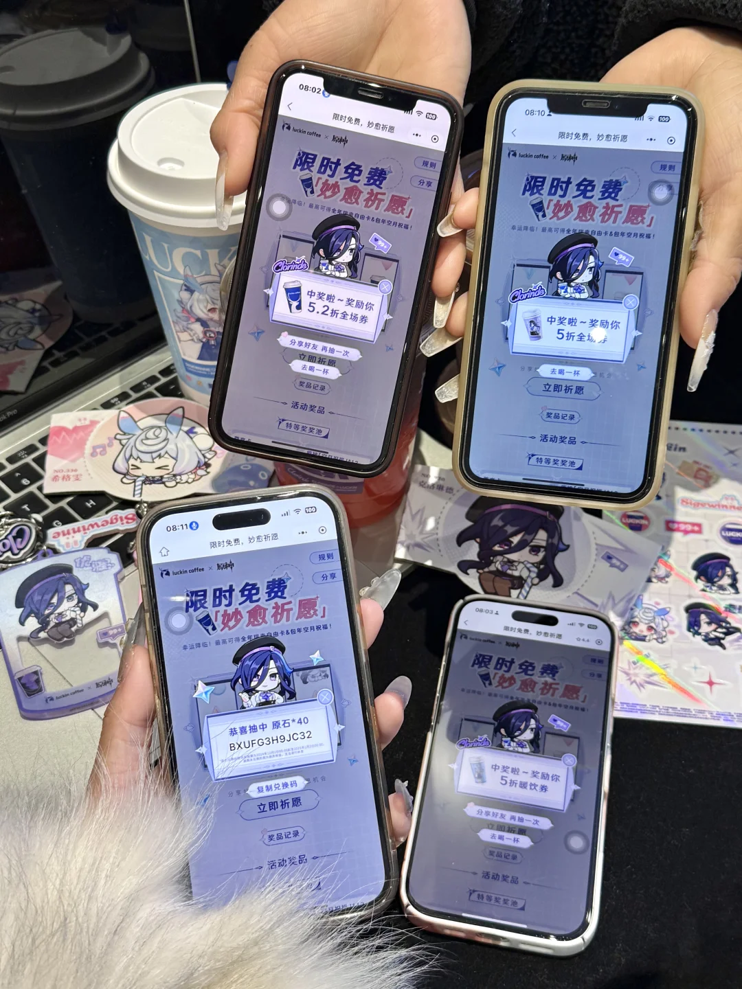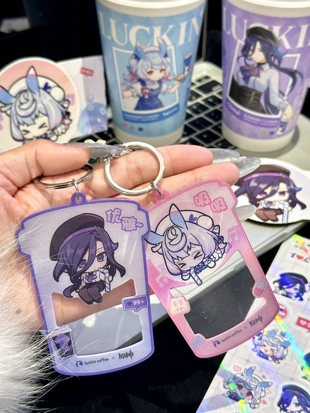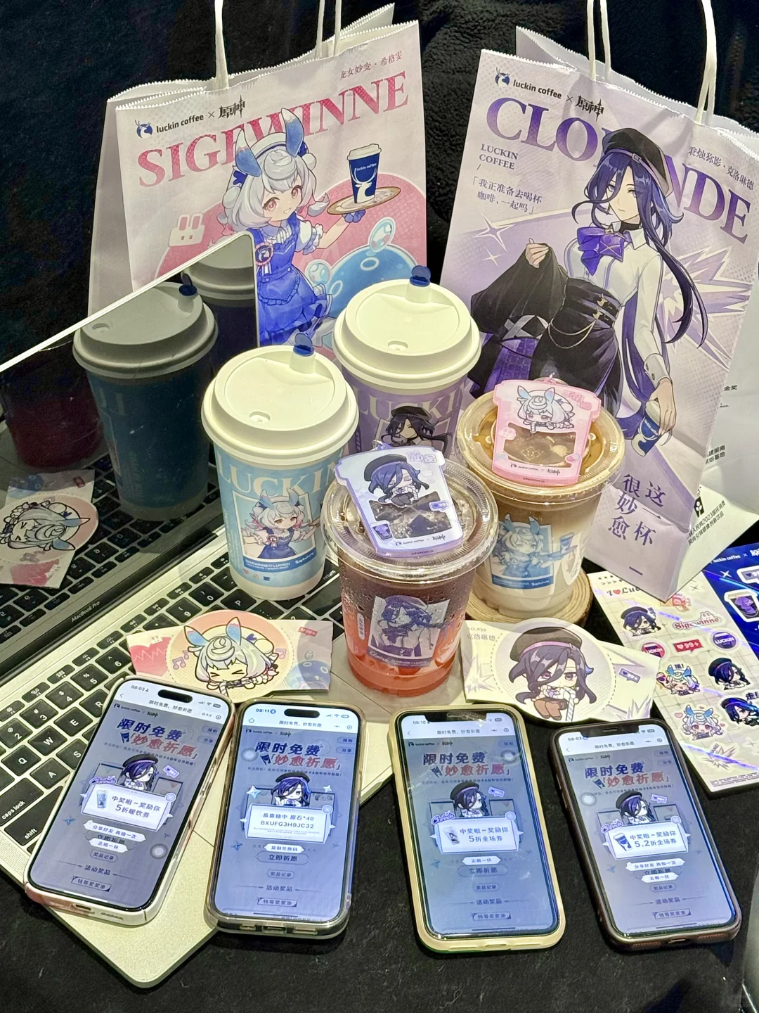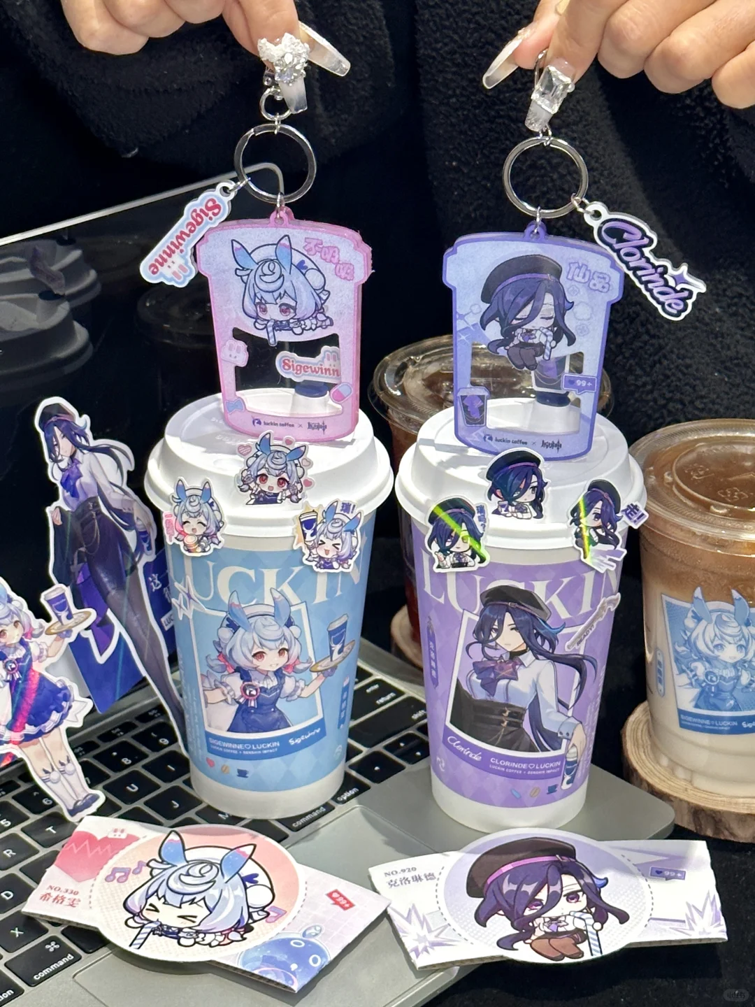 啊啊啊终于上了!瑞幸原神联名! 一大早就拉着朋友冲了 周边亚克力钥匙扣、贴纸、杯套和主题杯……克洛琳德和希格雯两款通通拿下!! 钥匙扣晃动还会眨眼睛太可爱了!!亚克力厚度很坚硬超喜欢啊啊啊啊 还有chou🎁机会姐妹们别忘了 到底是谁在抽中原神包年咖啡啊啊啊! 俺试了四个手机也没抽到😡😡 谁中了快出来给我吸吸欧气!!!