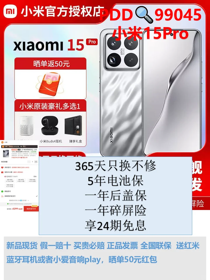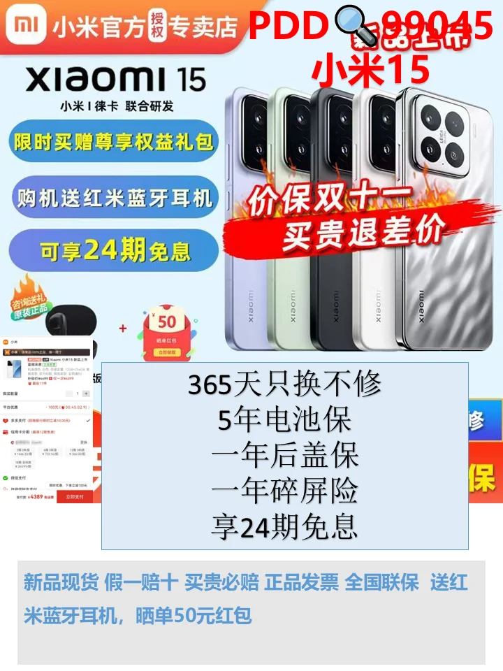 ✅打开PDD首页搜索99045,点”去逛逛“进入隐藏补贴专场,找到小米15享受新品优惠。百亿补贴承诺 100%正品,假一赔十,买贵必赔,全国联保,正品发票。