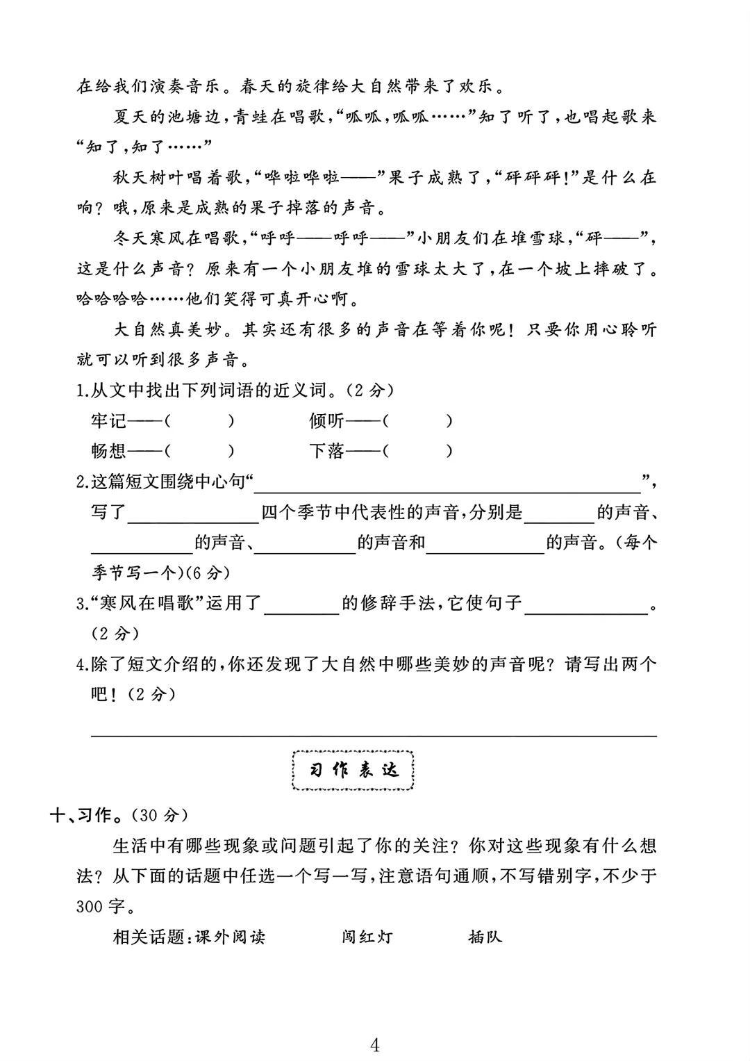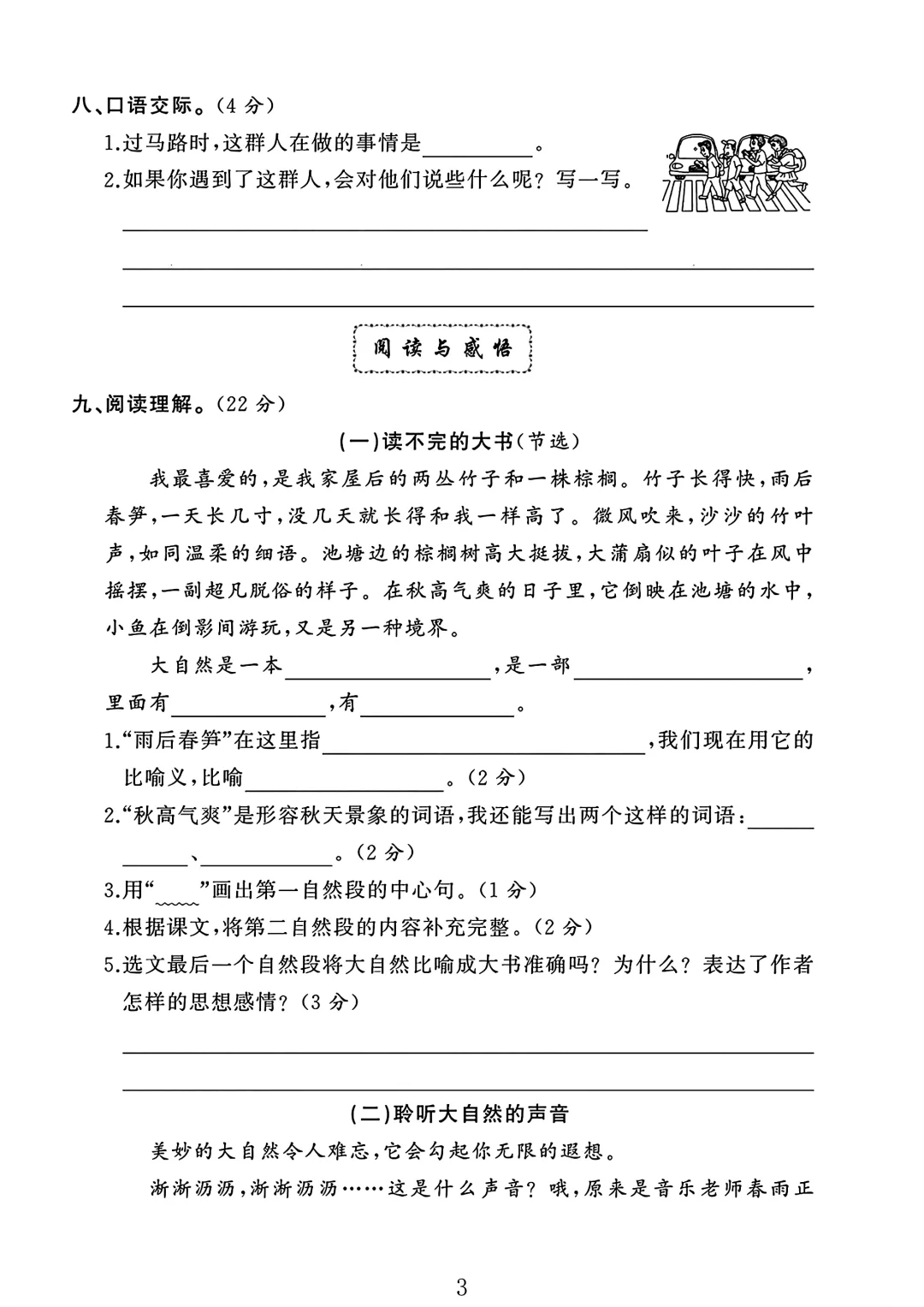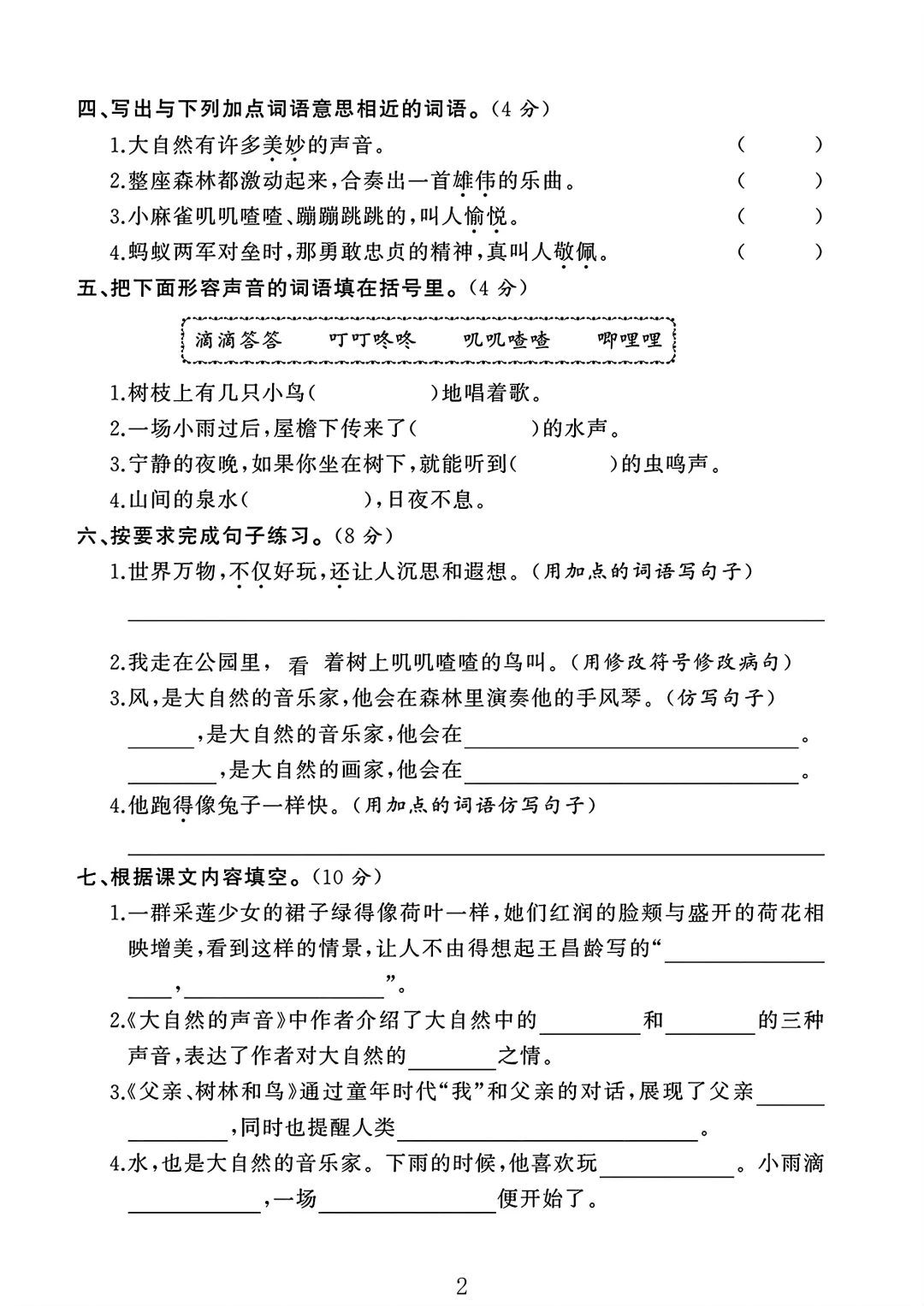 人教版 三年级上册语文 第七单元测试卷 单元测试 电子版可打印 试卷