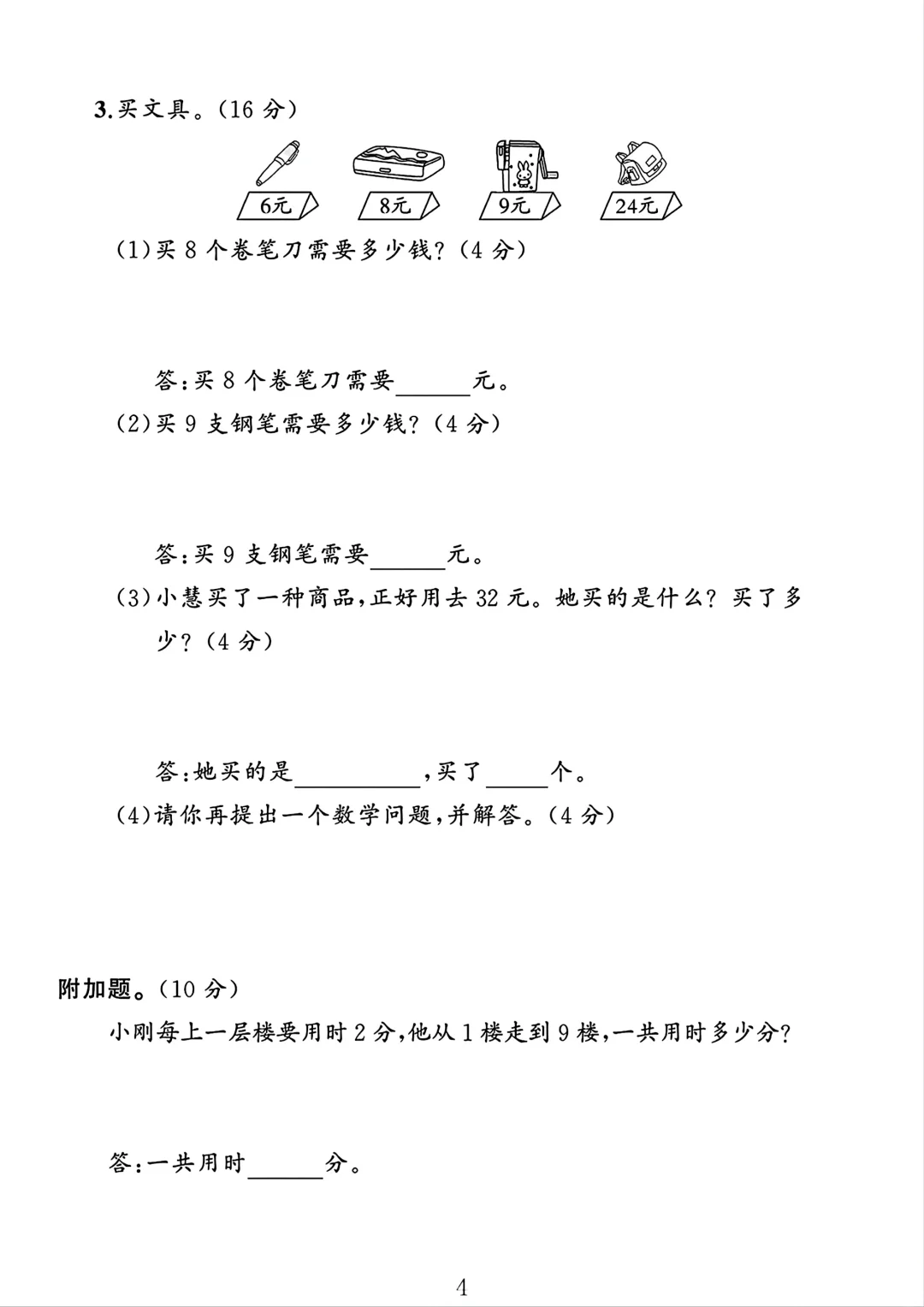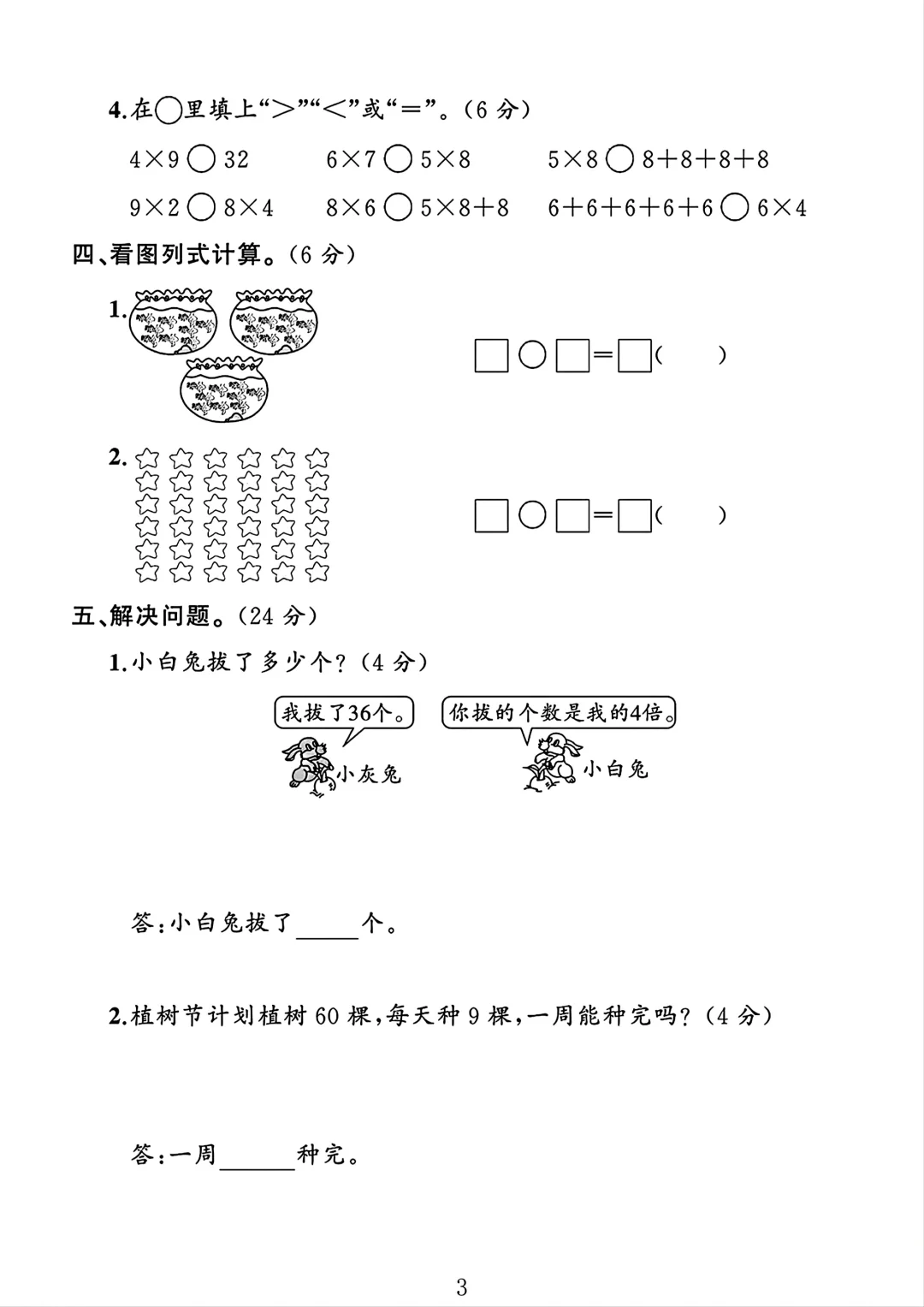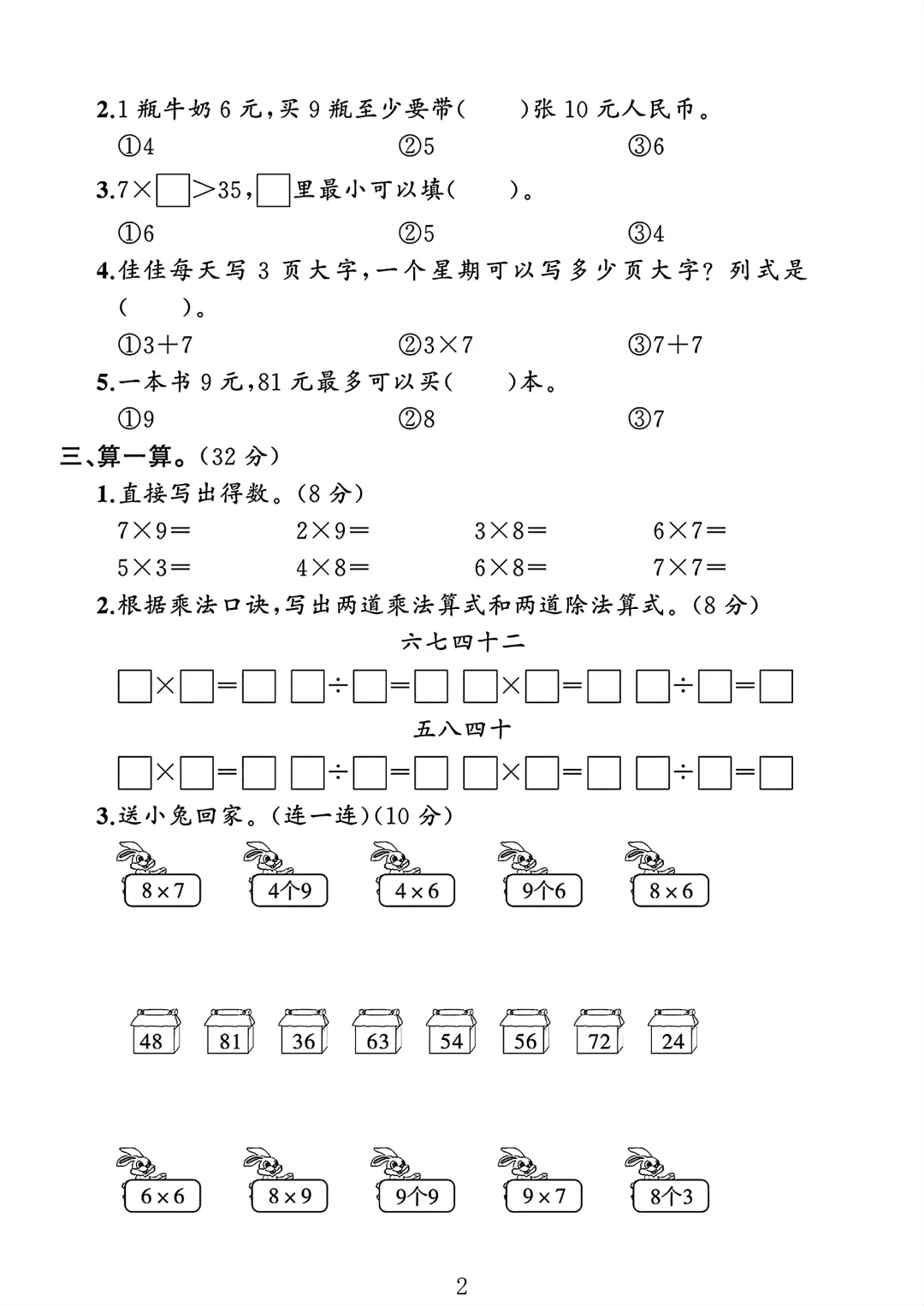 北师大版数学 二年级上册数学 第八单元 测试卷 试卷 单元测试 电子版可打印
