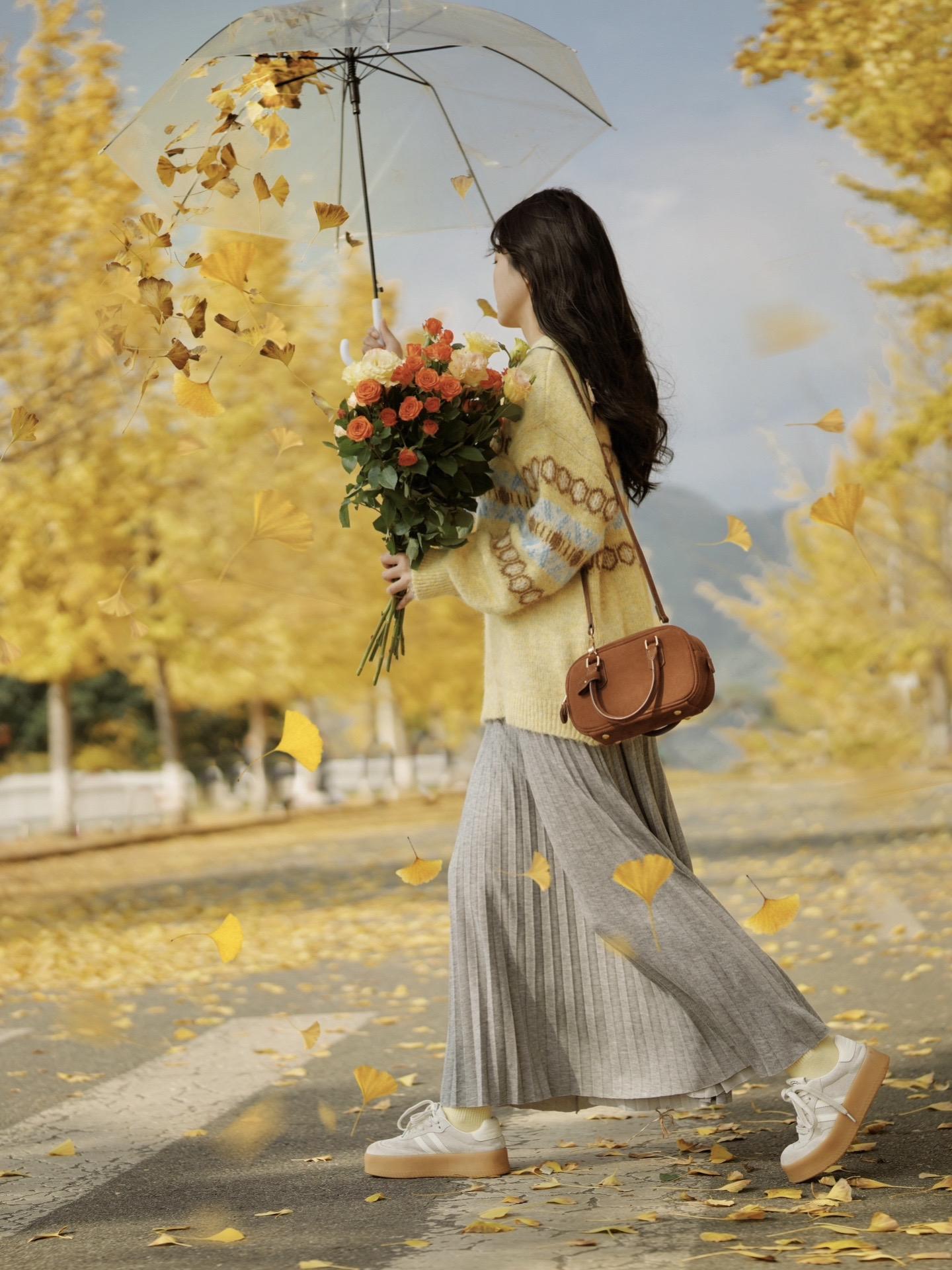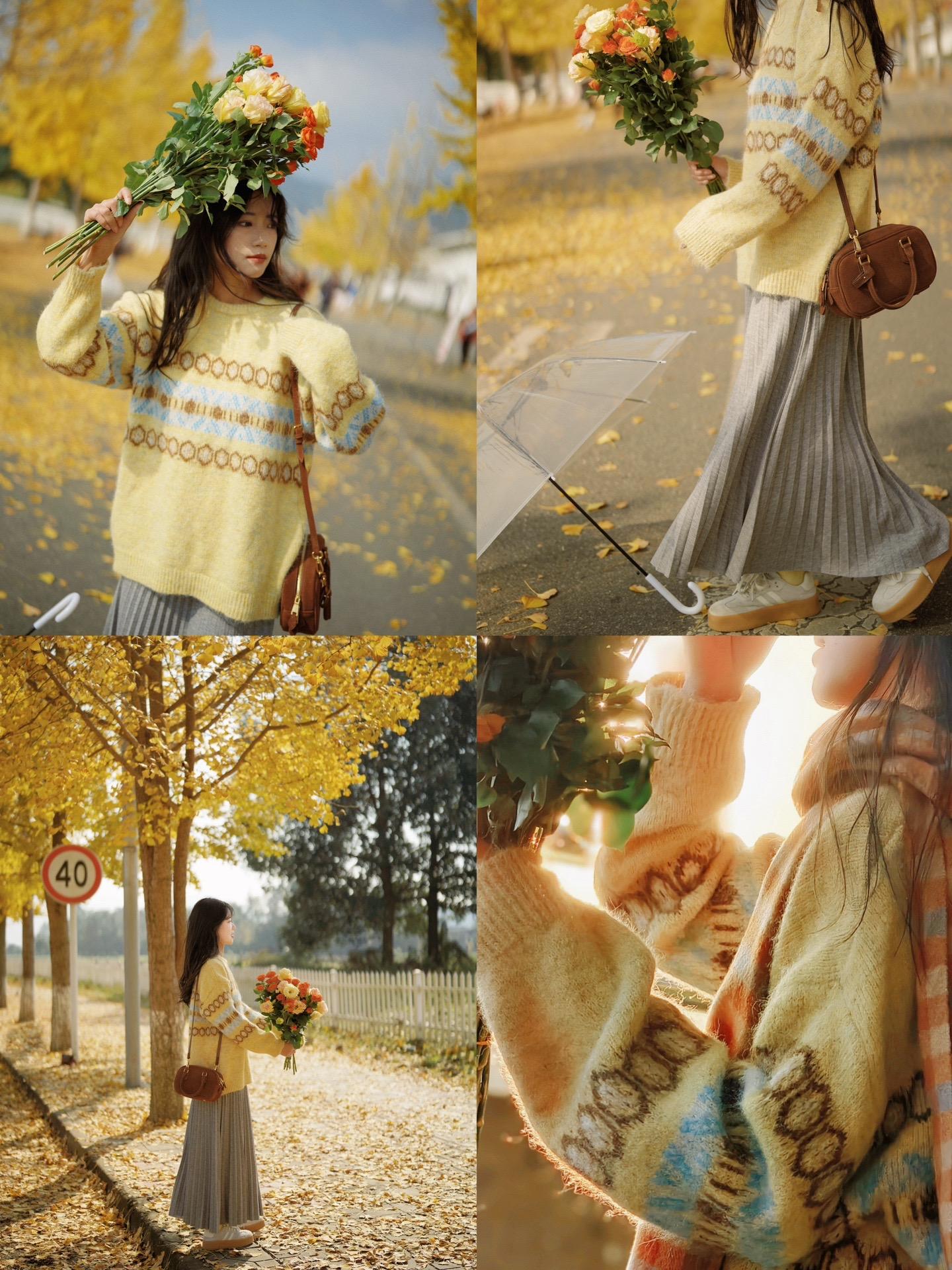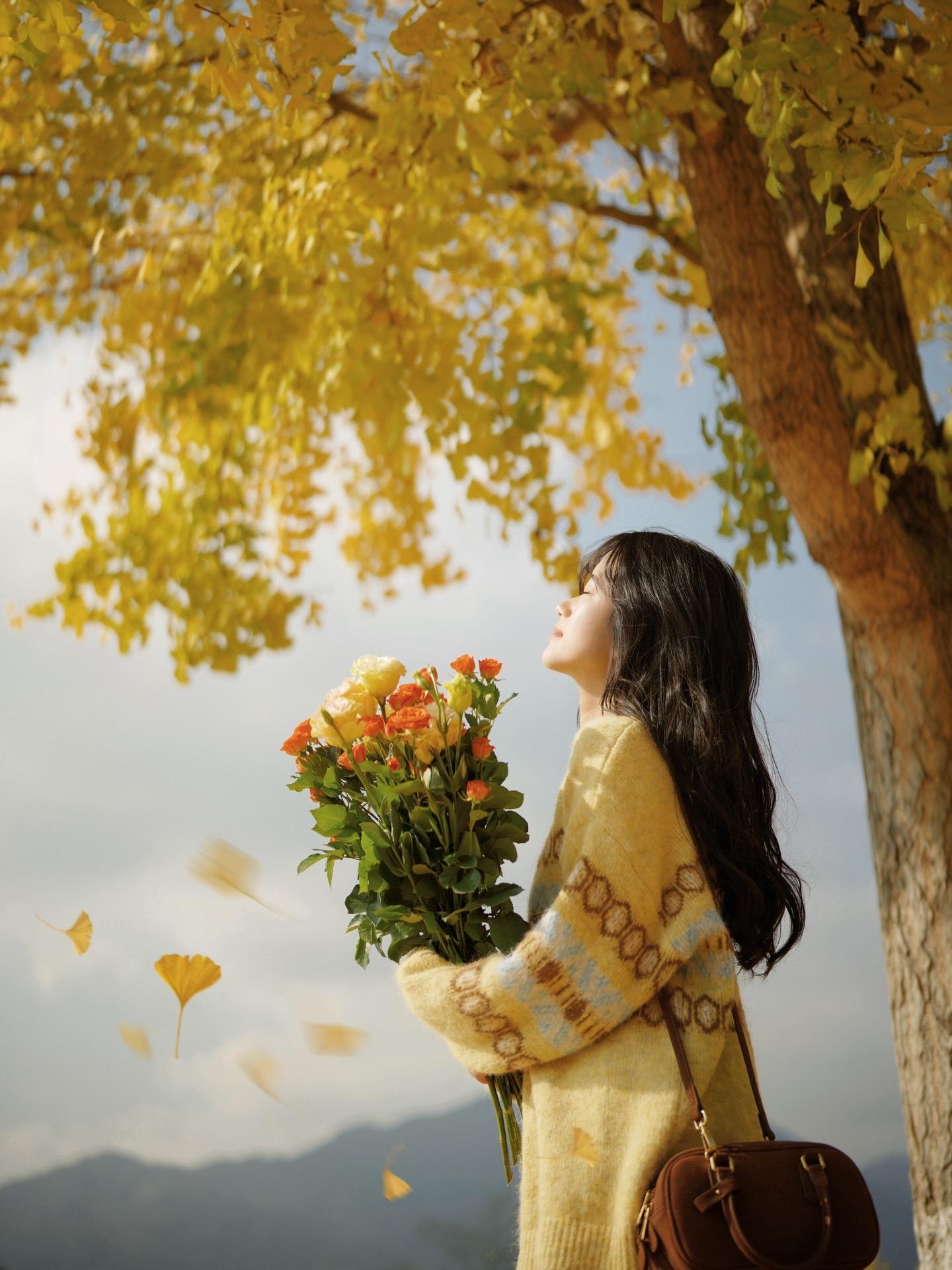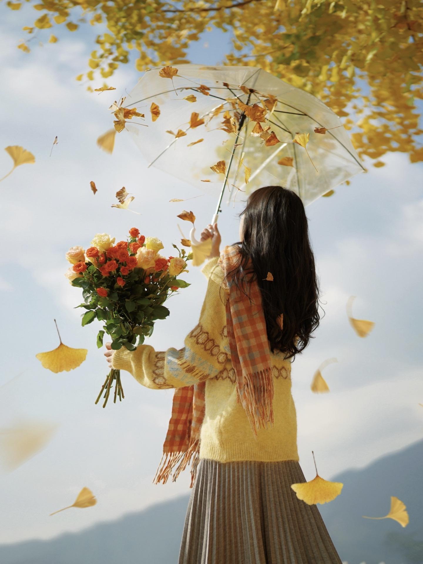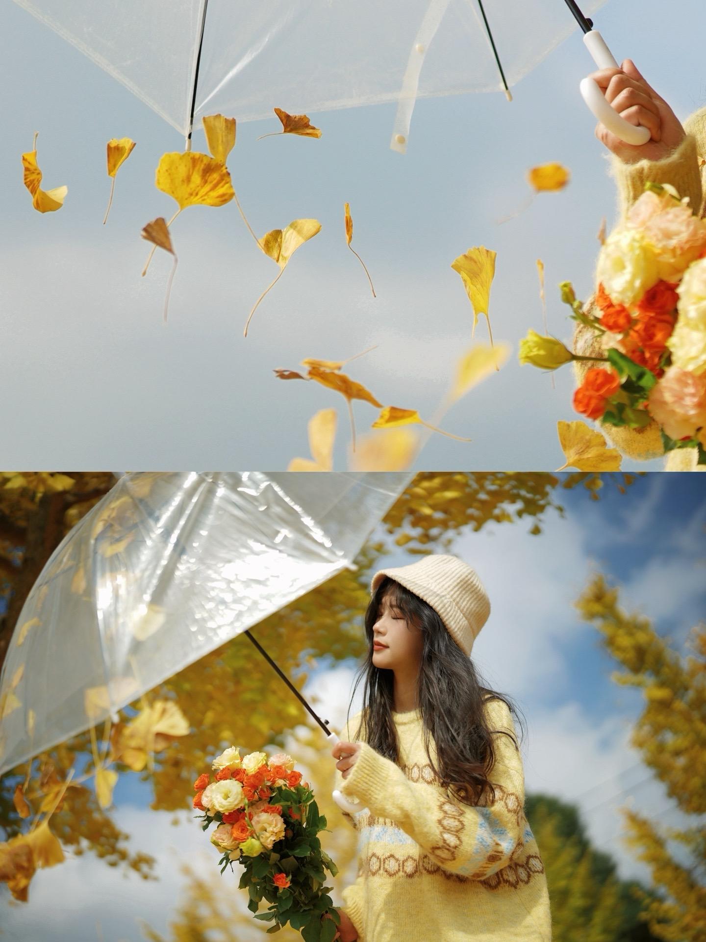 去淋一场浪漫的银杏雨~~文艺氛围感拍照。最近的浪漫是银杏给哒~ 有阳光的银杏林更美🍂💛🤎🍂 一把花、一把伞~ 拍出文艺电影感