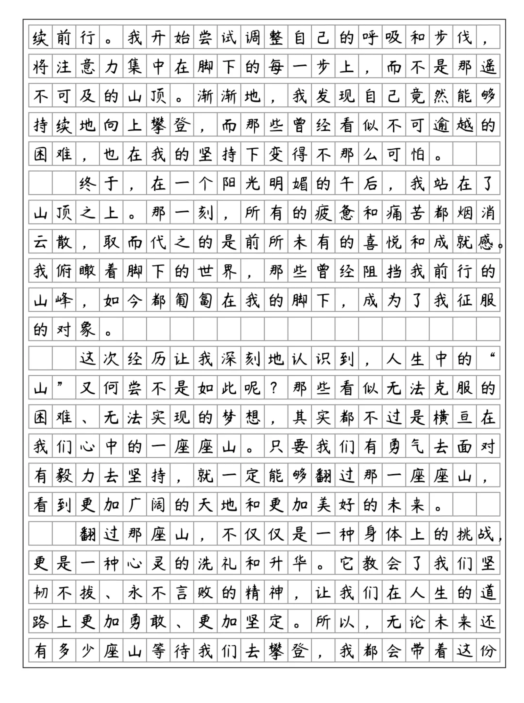 中考作文,翻过那座山,不仅仅是一种身体上的挑战,更是一种心灵的洗礼和升华不管这座山有多高,都有爱我的人 默默支持我,左下角测一测谁是你最爱的人。