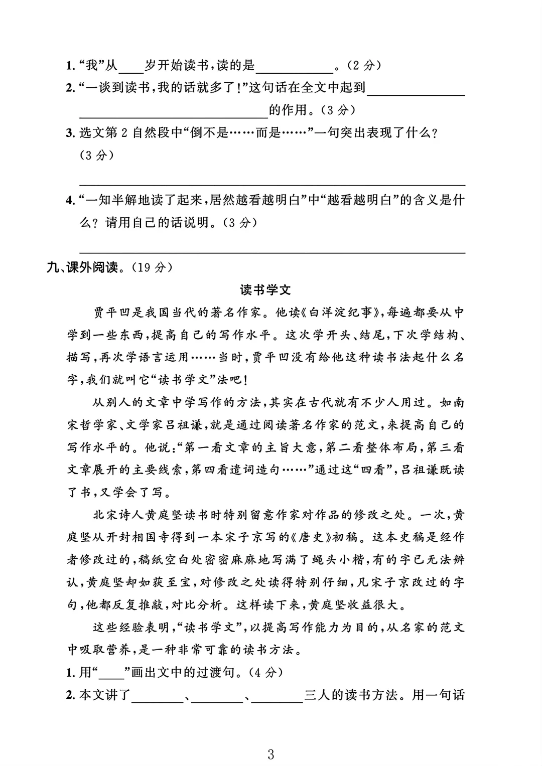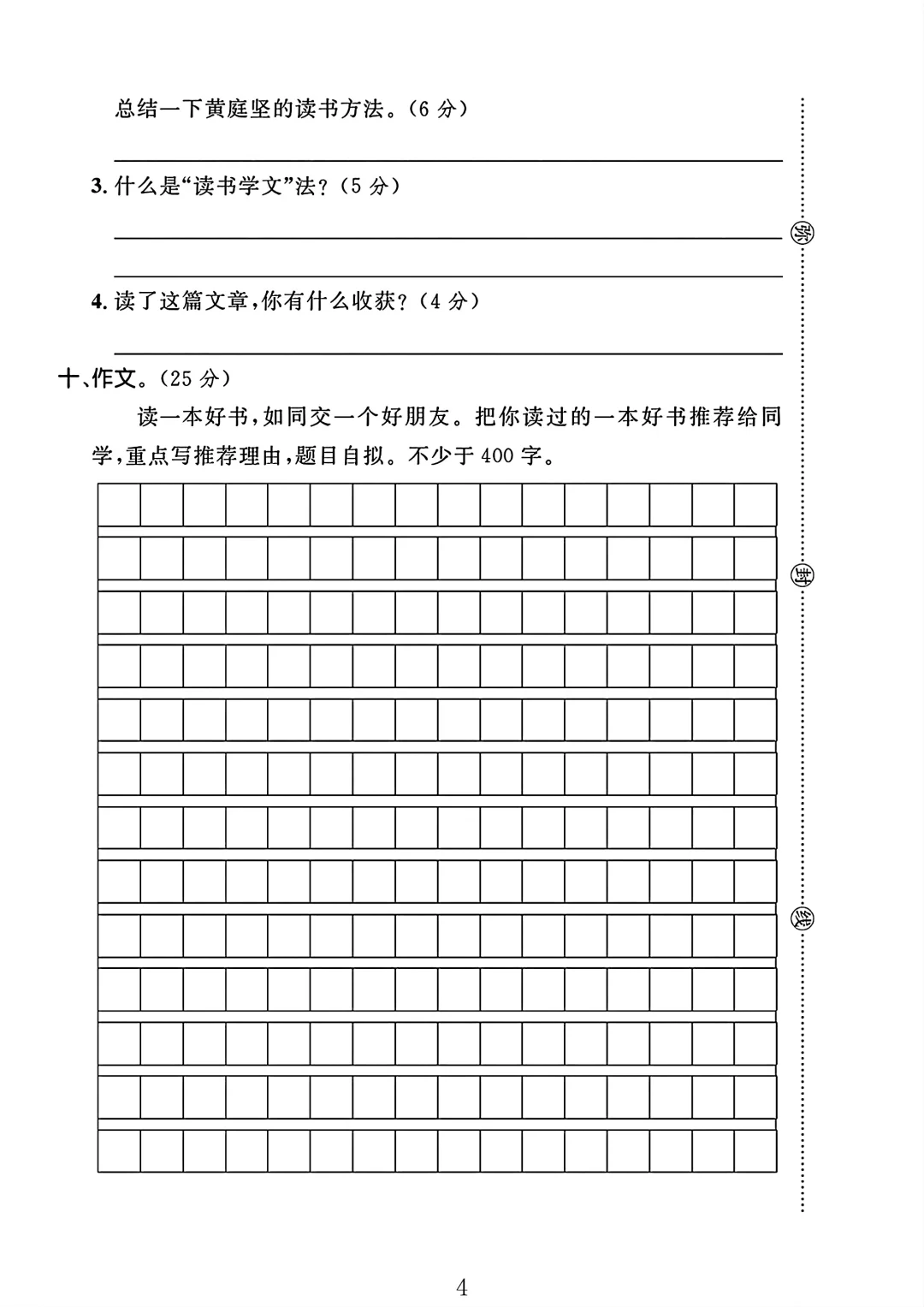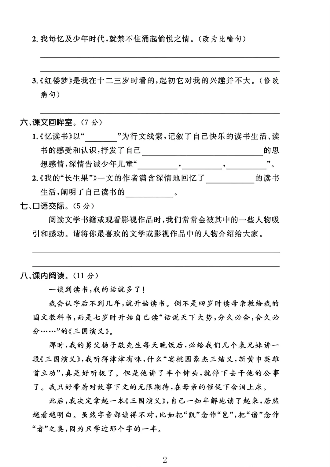 人教版 五年级上册语文 第八单元 试卷 单元测试 电子版可打印