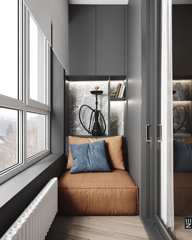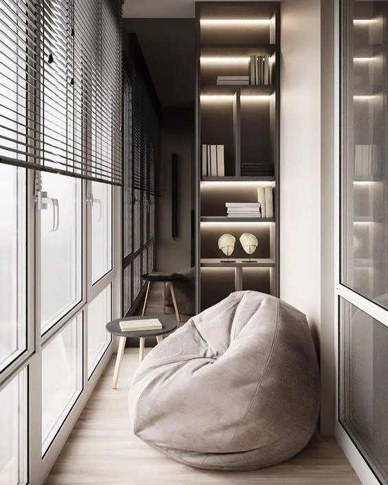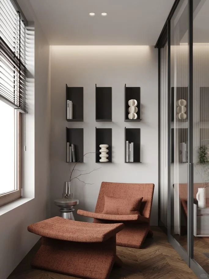 松弛感空间设计 一人居设计 小空间大设计 小空间大格局 阳台 阳台柜 阳台书房 阳台休闲椅 阳台休闲区 卧室阳台