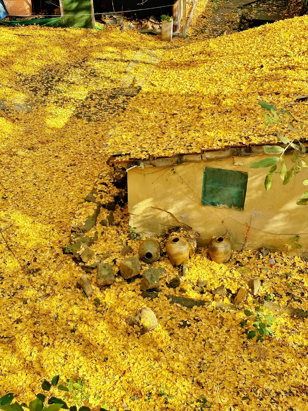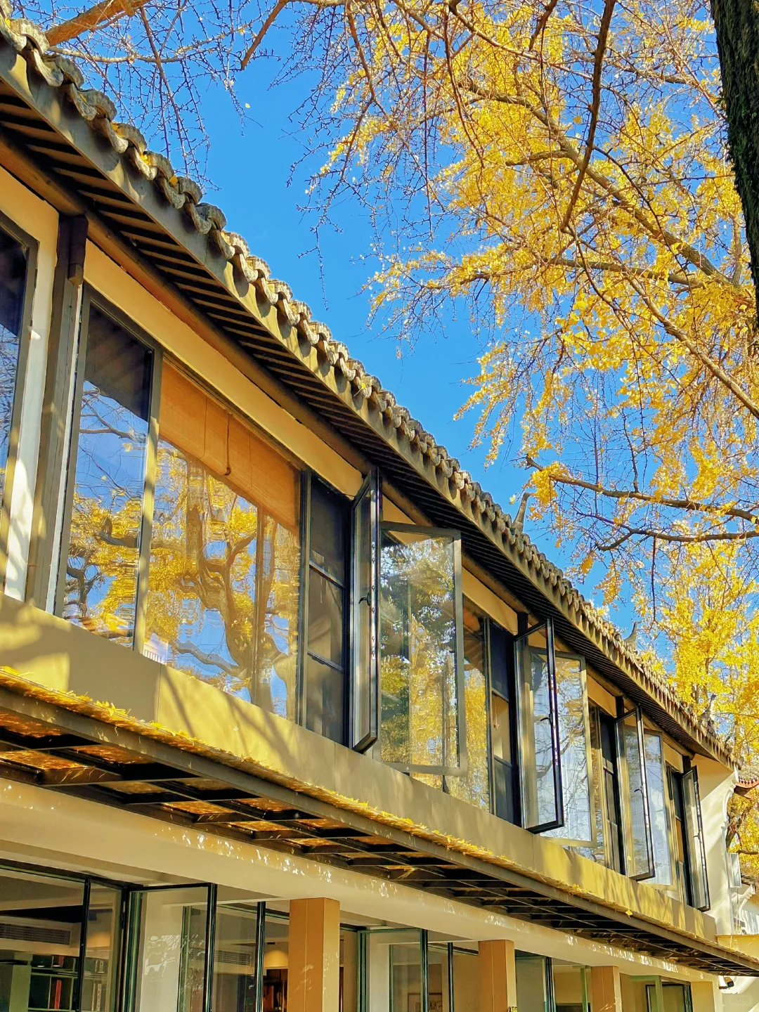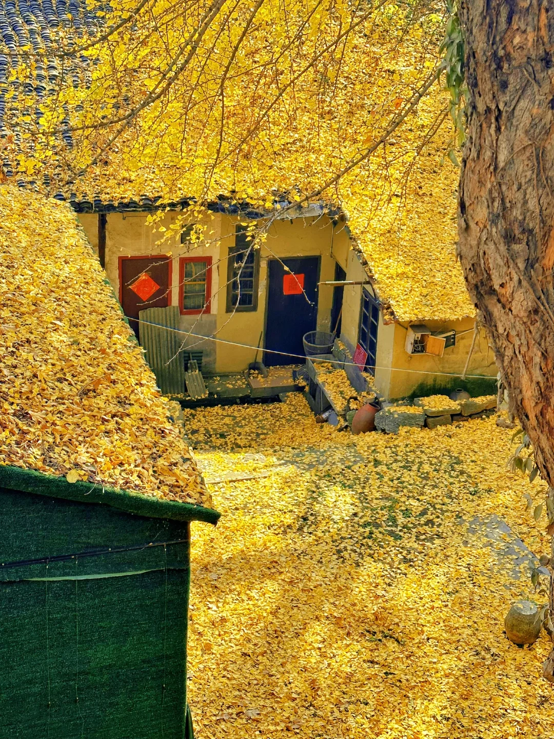 在十三间楼附近,可以一起打卡,俯瞰银杏叶落满屋檐和整个庭院,真的超级美。