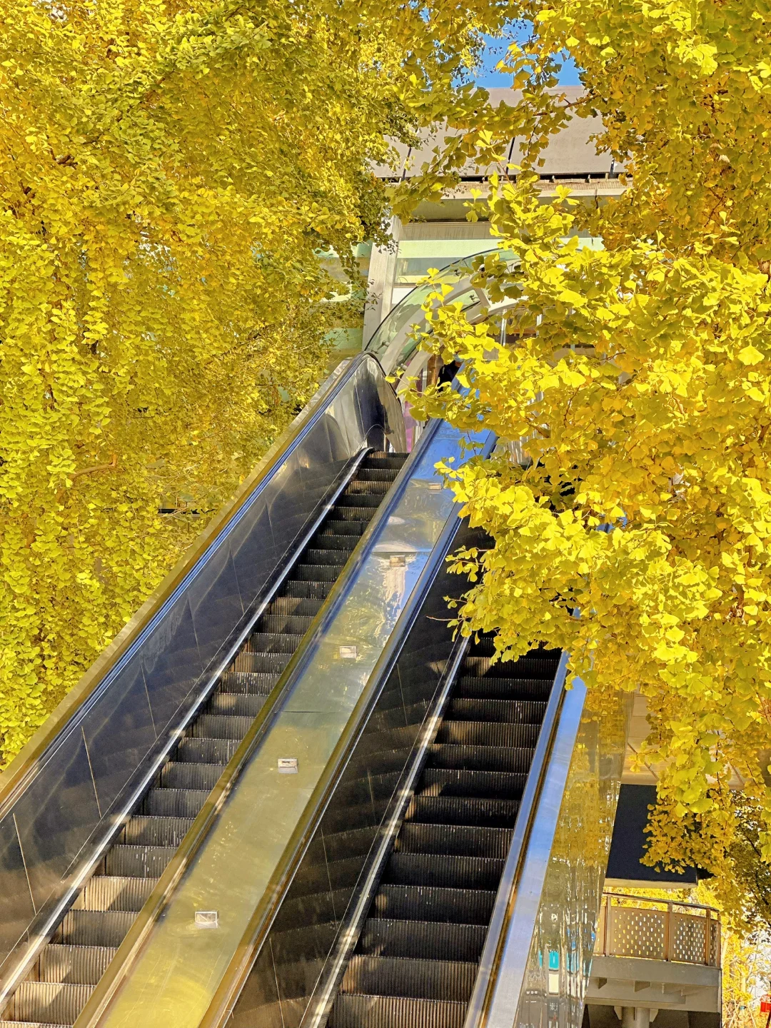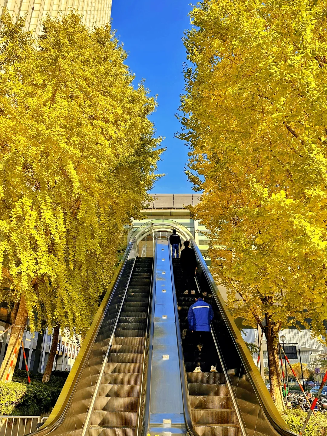 通往浪漫的银杏扶梯,仿佛穿梭在金色的童话世界,不得不说杭州真的太会了!