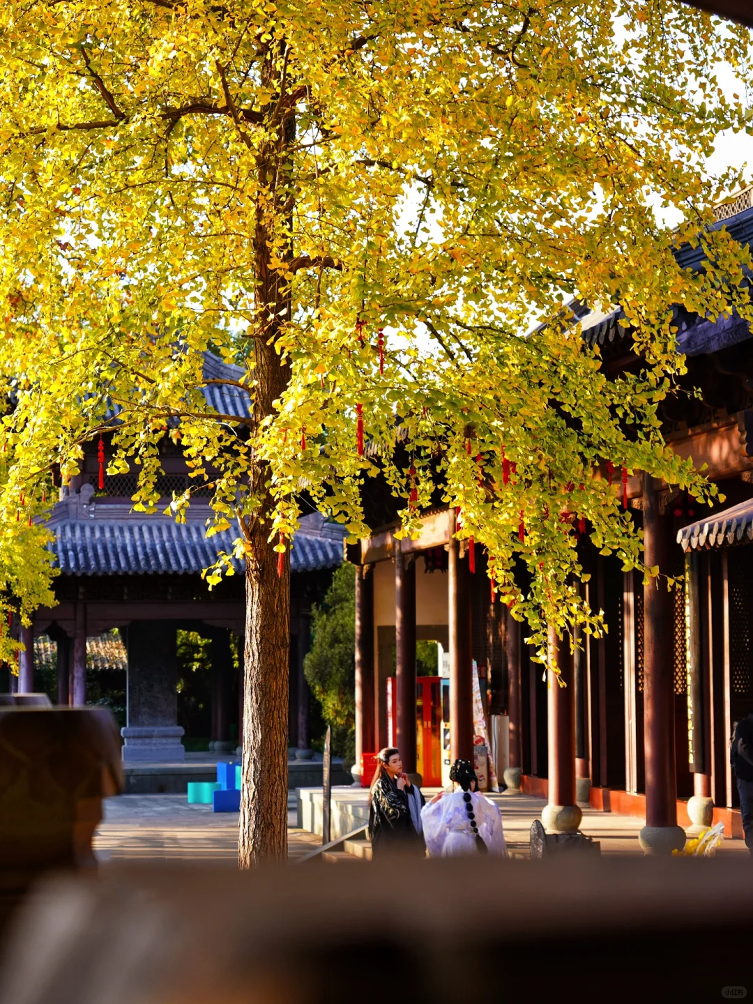 就在西湖边,金黄的银杏给祠宇增添了几分历史的厚重感,这里很适合拍汉服写真。
