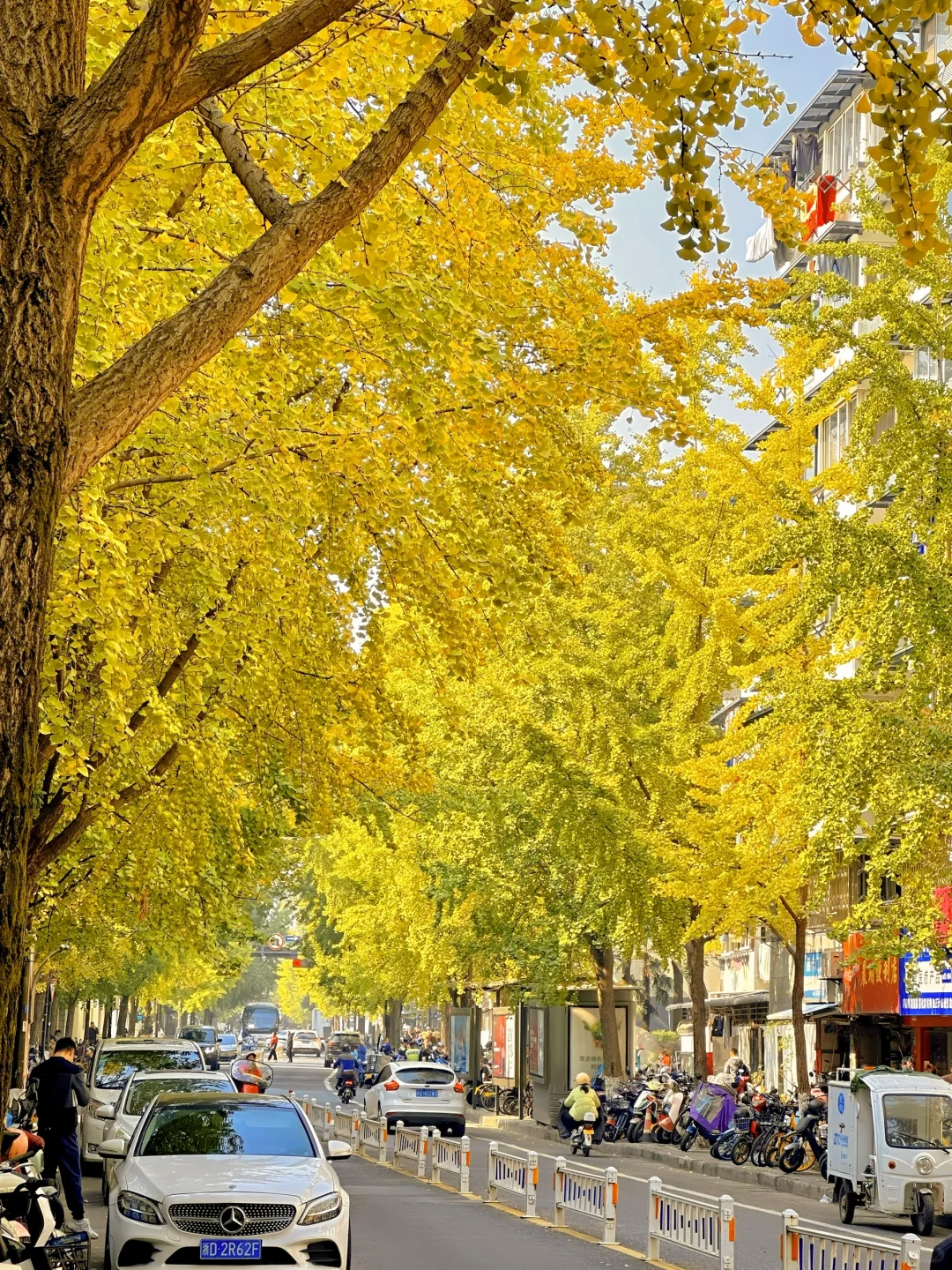 整条街道两边全是银杏树,新世纪外国语学校门口的机位必打卡!秋天漫步在这里感觉很松弛。