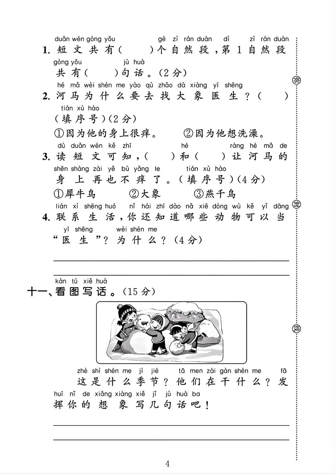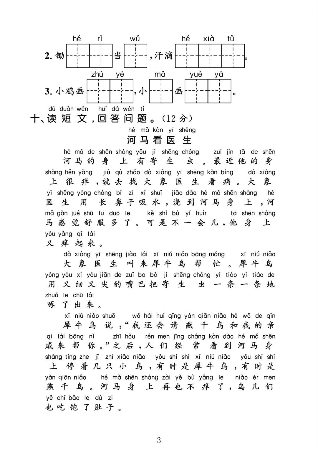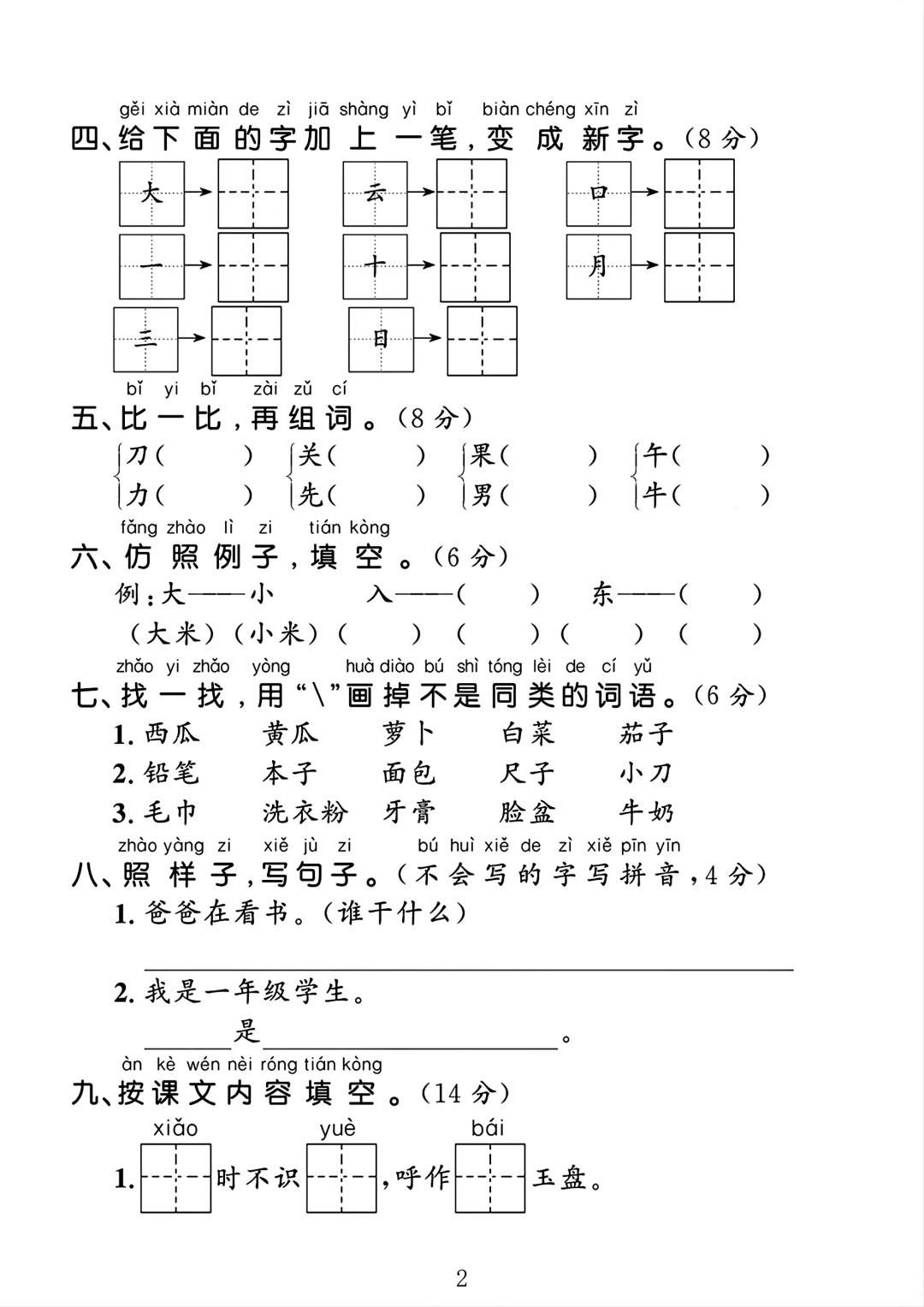 一年级语文上册期末试卷 1🈶答案