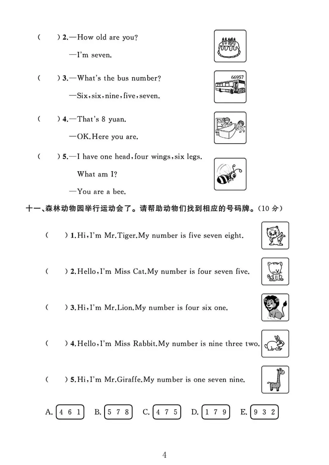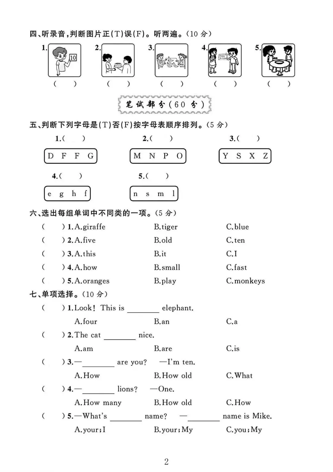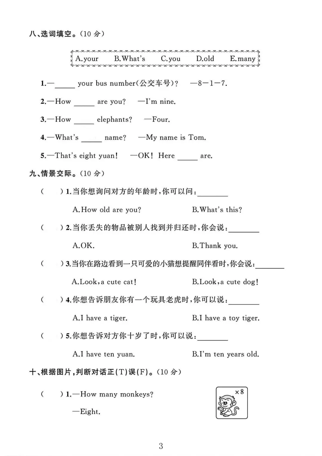 人教版 三年级上册英语 第六单元 试卷 单元测试 电子版可打印