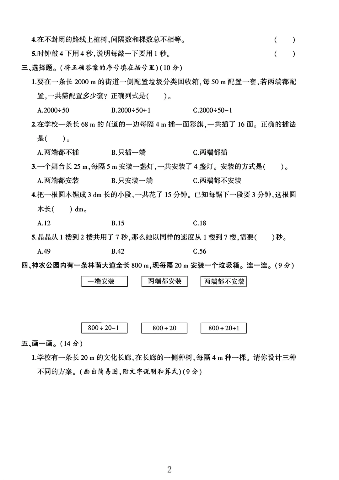 人教版 五年级上册数学 单元测试 第七单元 测试卷 试卷 电子版可打印