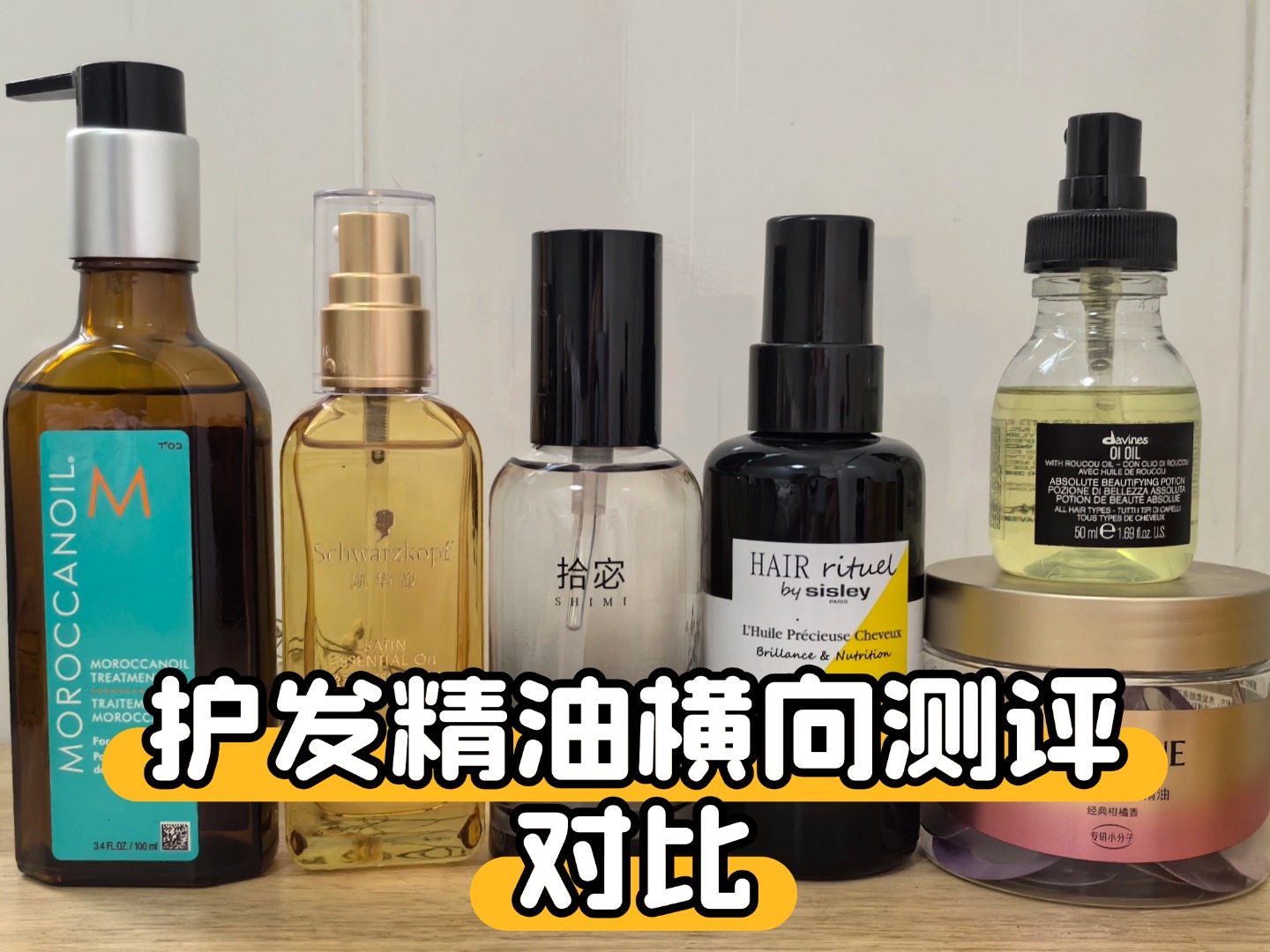 (下图展示了进行护发精油测评过的部分产品)